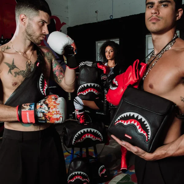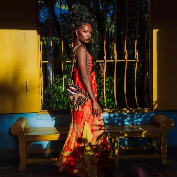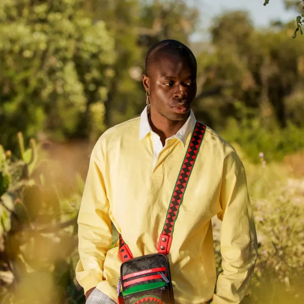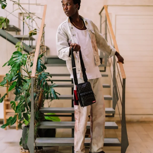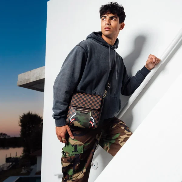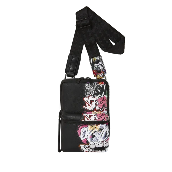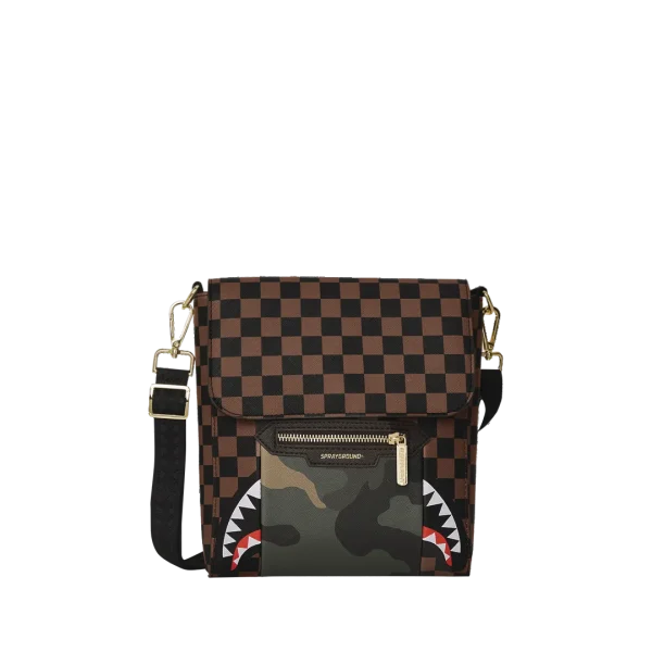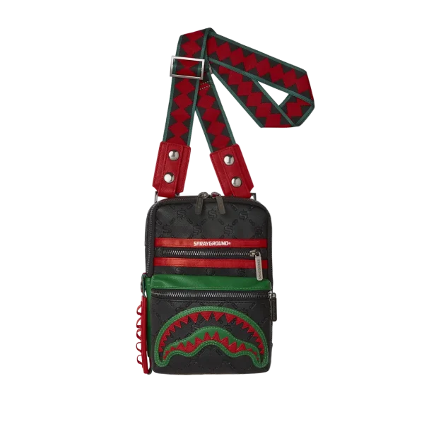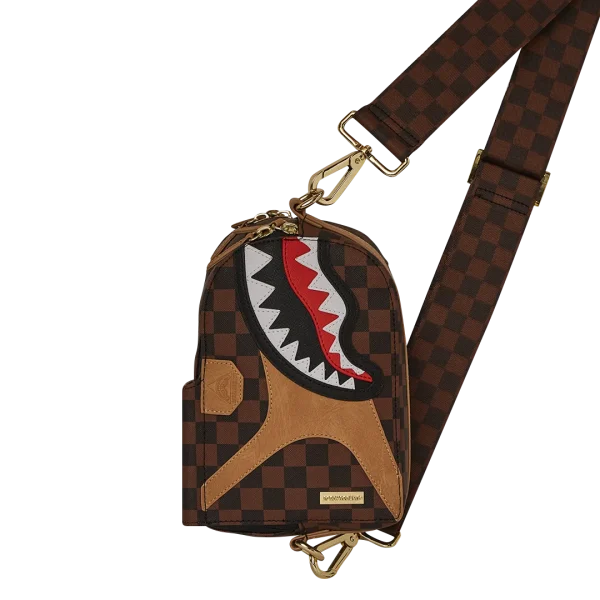 EXTERIOR GOLD ZIP POCKET SHARKS IN PARIS MESSENGER SLING BAG