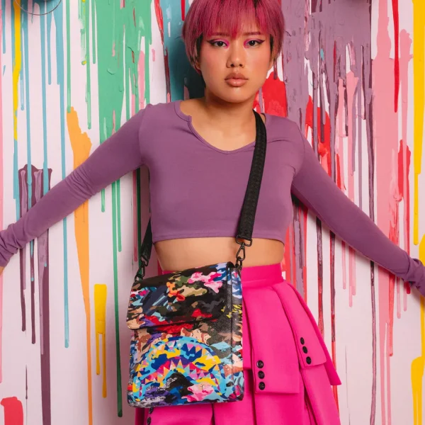 SLICED AND DICED CAMO MESSENGER SLING BAG