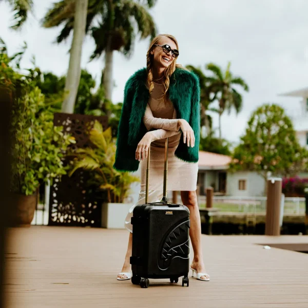 REALITY CHECK SHARKITECTURE CARRY-ON JETBLACK LUGGAGE (GOLD HARDWARE)