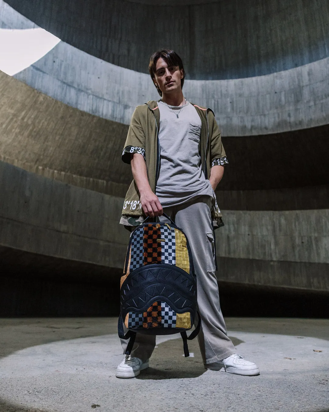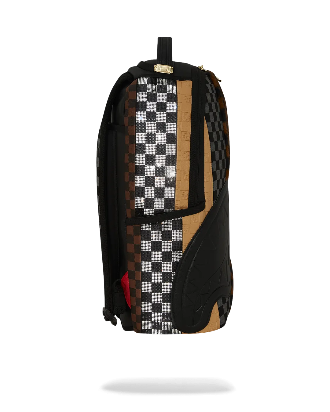 Dimensions: 18″ x 6″ x 11.5″ ? Front zipper pocket ? Side pockets ? Zippered Stash pocket ? Separate velour sunglass compartment ? Ergonomic mesh back padding ? Adjustable Straps for custom sizing ? Gold zippers with metal hardware ? Metal “Sprayground Authentic” badge ? Slide through back sleeve connects to carry-on luggage to free your hands