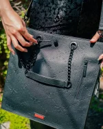 Dimensions: 19″ x 6.5″ x 11.5″ ? Locking pin closure ? Removable adjustable strap for custom sizing ? Shoulder pad for comfort ? Top double chain handles ? Front zipper pocket ? Zippers with metal hardware