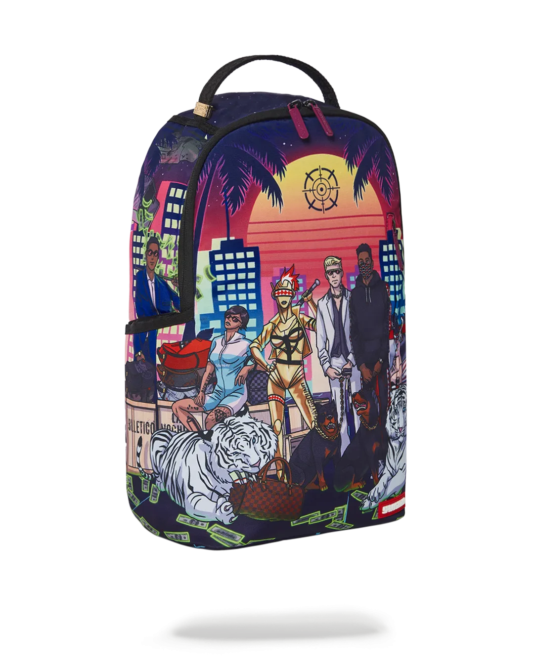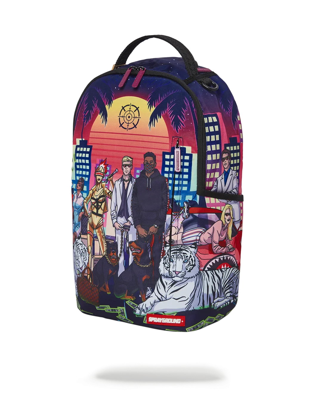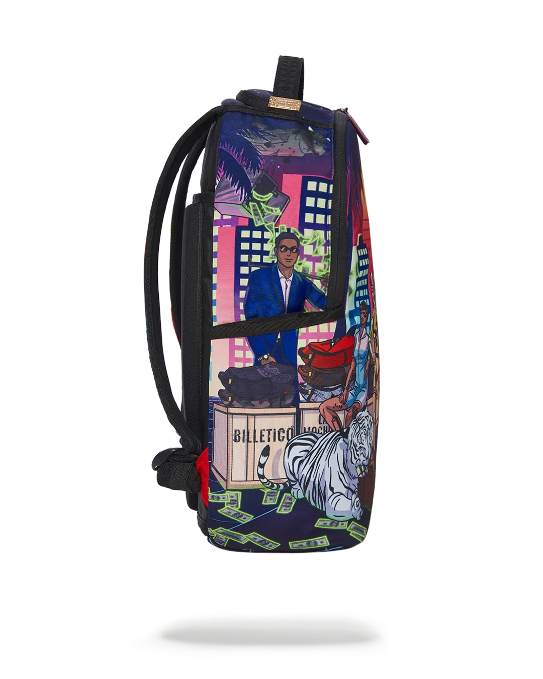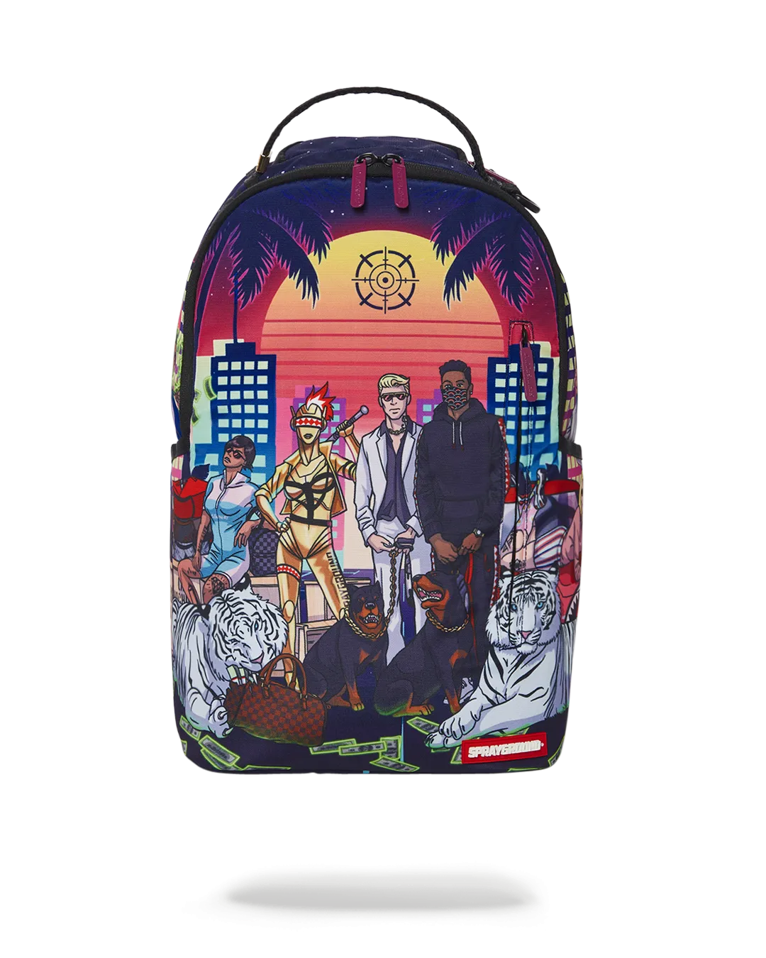 Dimensions: 18″ x 6″ x 11.5″ ? Front zipper pocket ? Side pockets ? Zippered Stash pocket ? Ergonomic mesh back padding ? Adjustable Straps for custom sizing ? Nylon Zippers with Metal Hardware ? Metal “Sprayground Authentic” badge ? Slide through back sleeve connects to Carry on luggage to free your hands