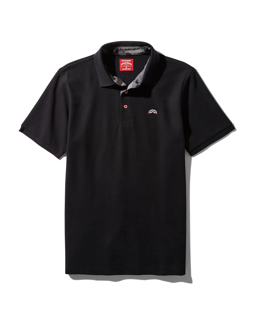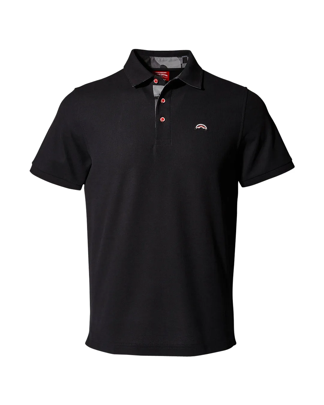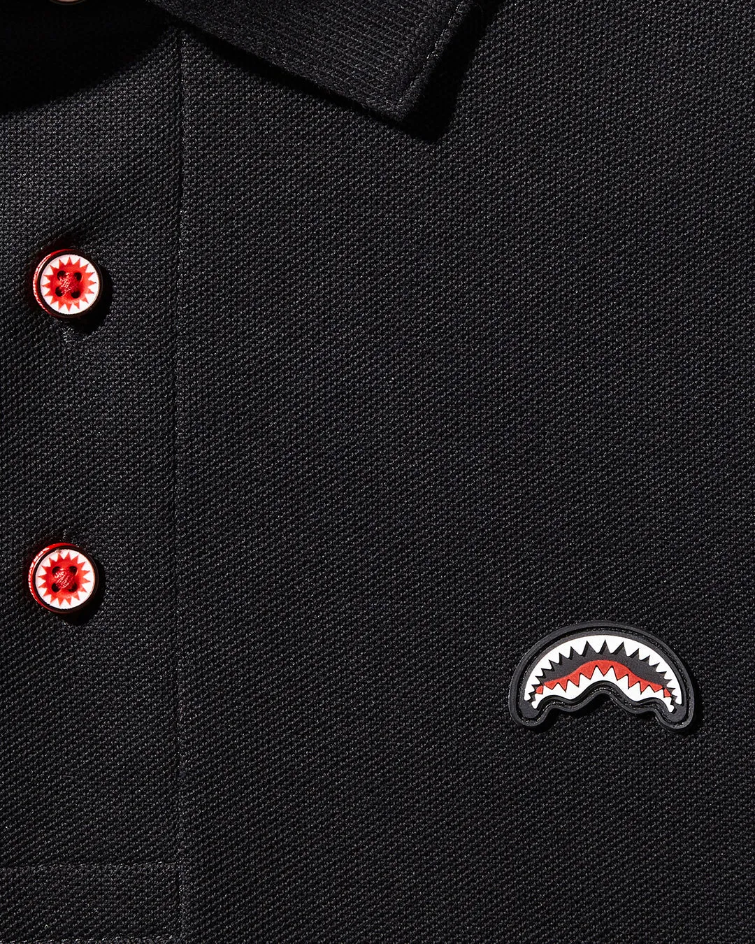 Embroidered shark mouth logo on front