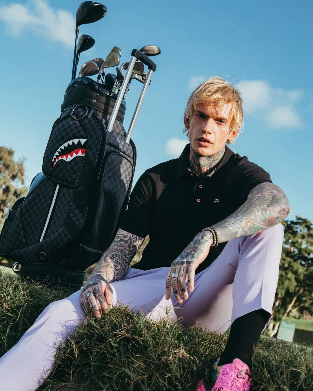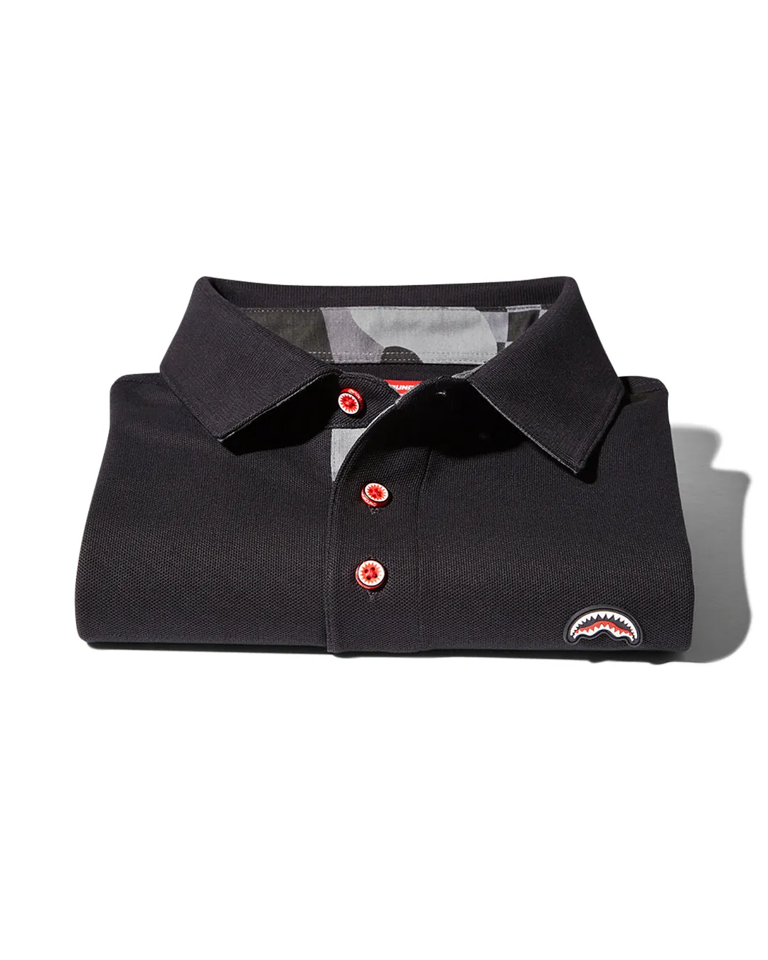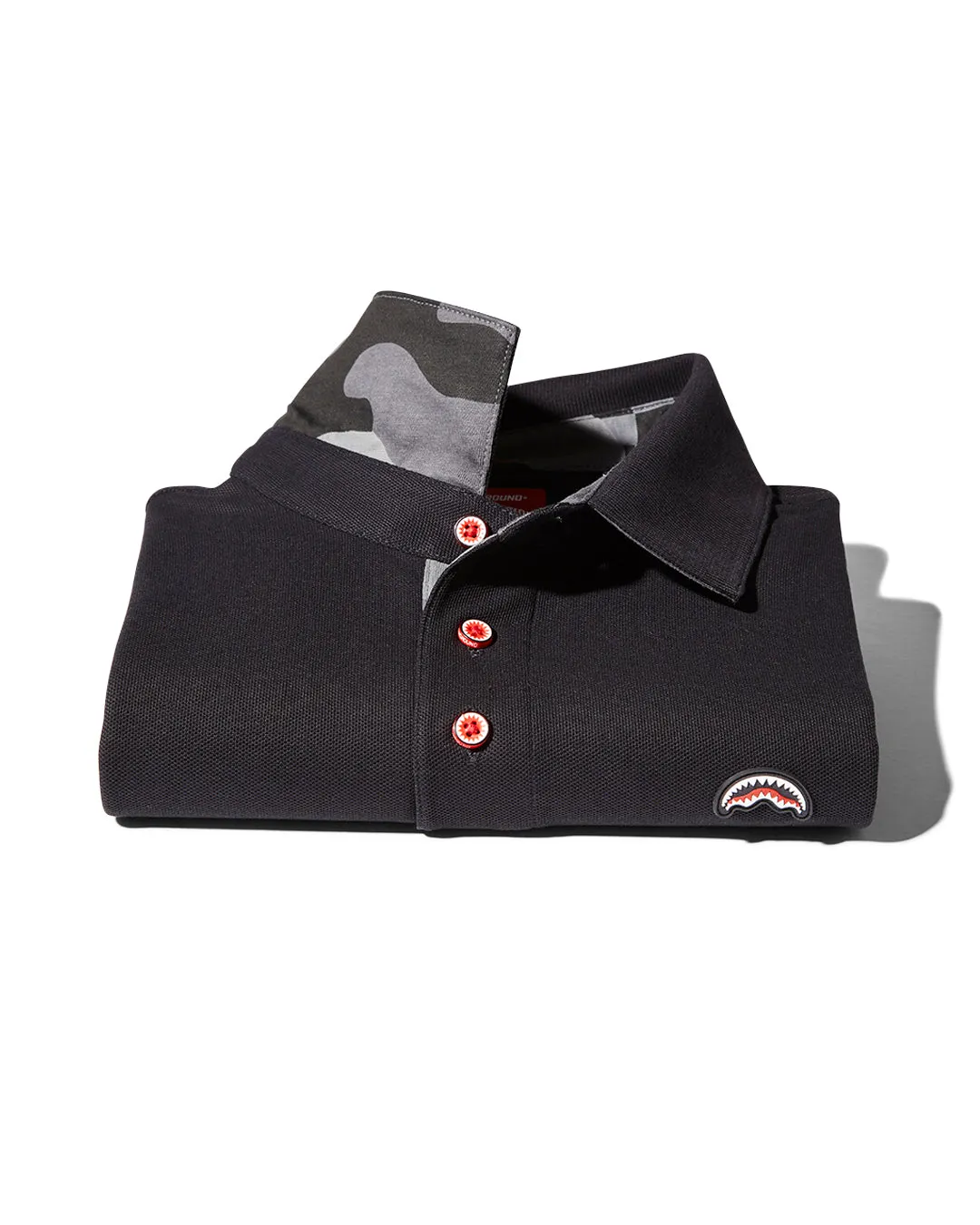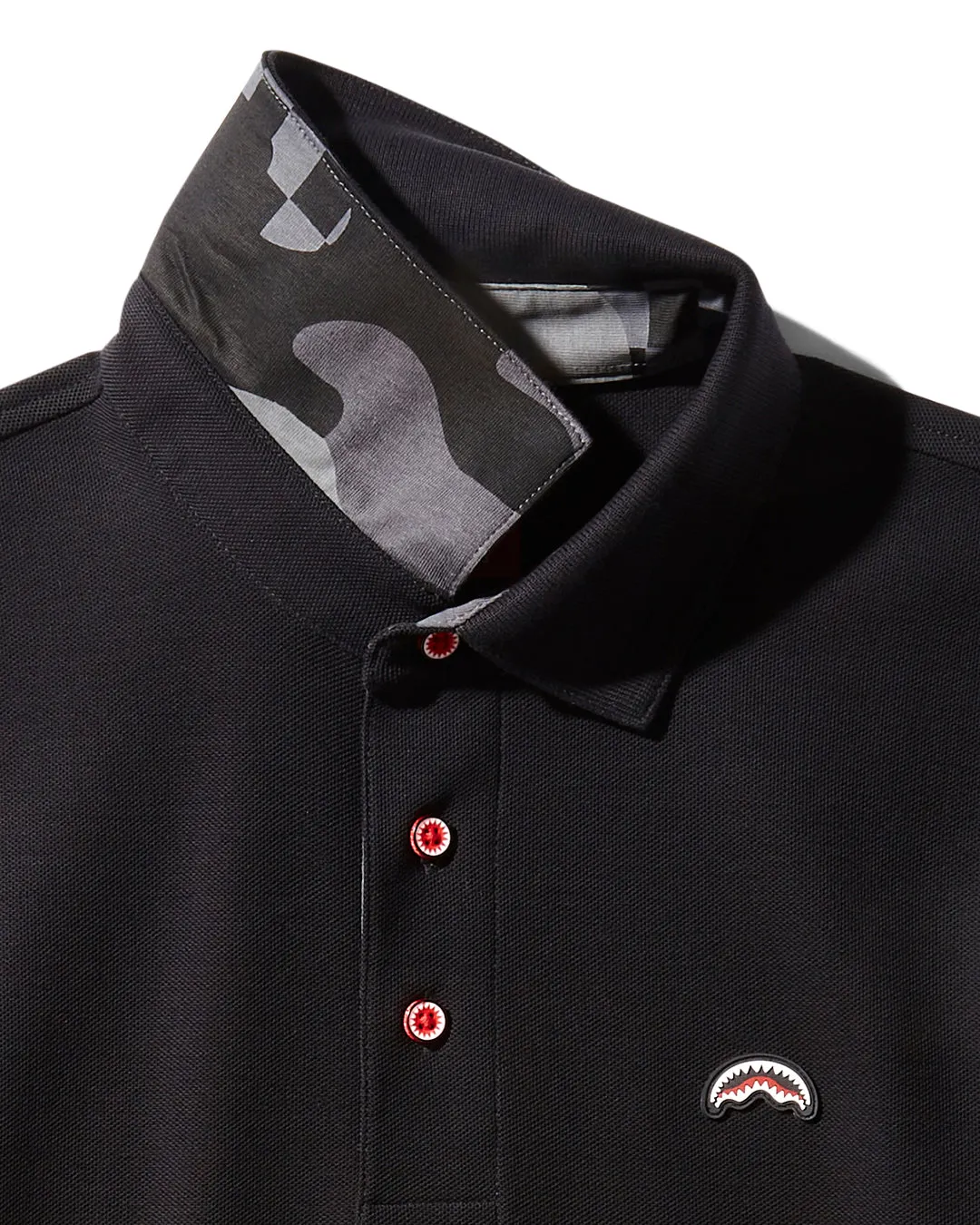 Embroidered shark mouth logo on front