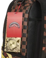 Dimensions: 18″ x 6″ x 11.5″ ? Front zipper pocket ? Side pockets ? Zippered Stash pocket ? Separate velour sunglass compartment ? Ergonomic mesh back padding ? Adjustable Straps for custom sizing ? Gold zippers with metal hardware ? Metal “Sprayground Authentic” badge ? Slide through back sleeve connects to carry-on luggage to free your hands
