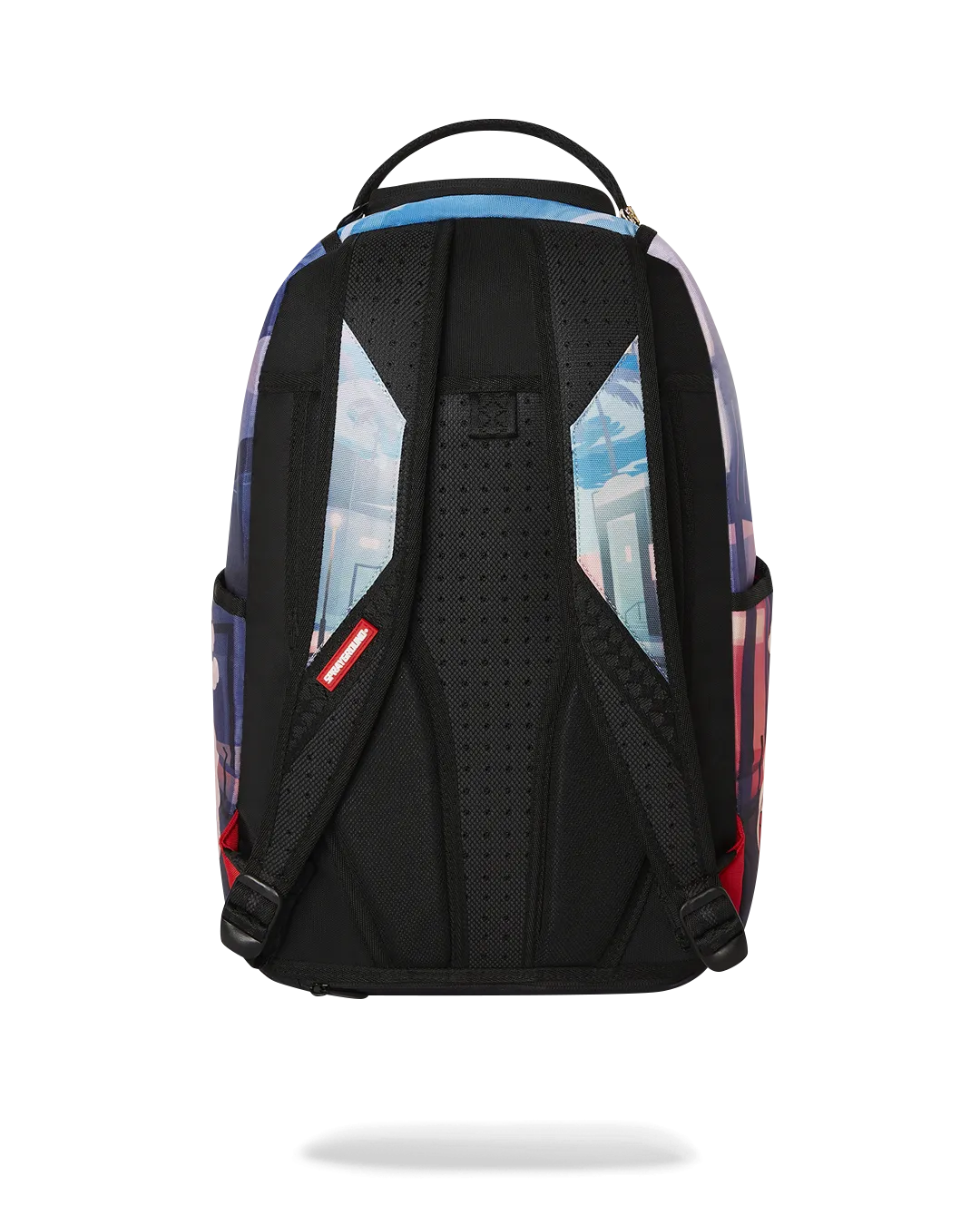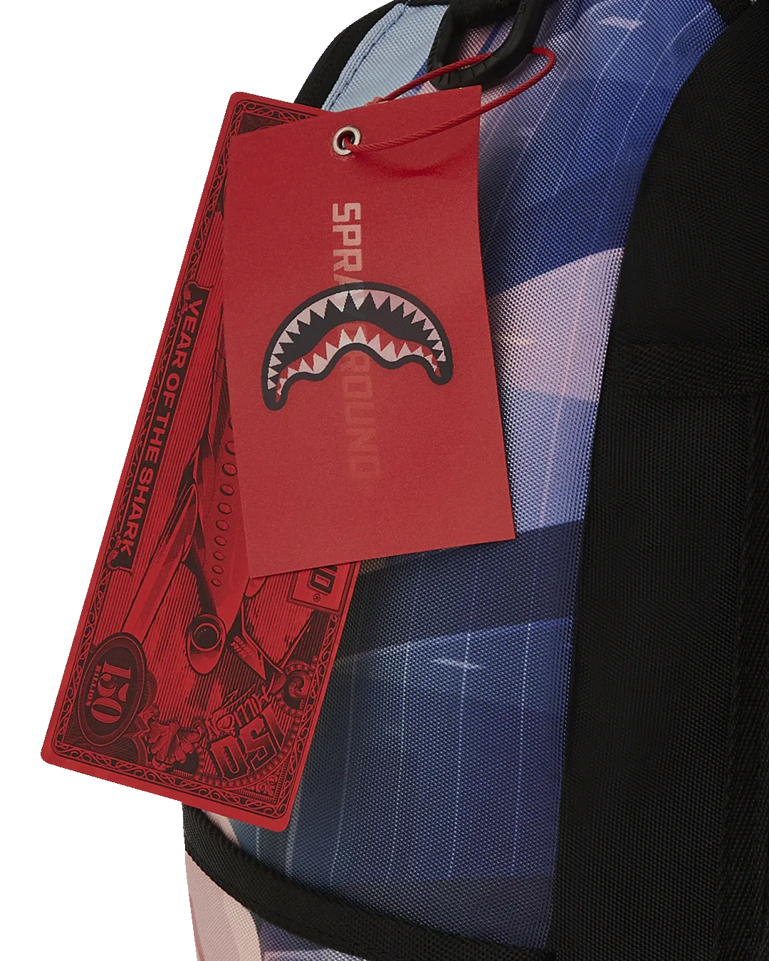 Dimensions: 18″ x 6″ x 11.5″ ? Front zipper pocket ? Side pockets ? Zippered Stash pocket ? Separate velour sunglass compartment ? Ergonomic mesh back padding ? Adjustable Straps for custom sizing ? Gold zippers with metal hardware ? Metal “Sprayground Authentic” badge ? Slide through back sleeve connects to carry-on luggage to free your hands