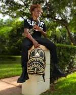 Dimensions: 18″ x 6″ x 11.5″ ? Front zipper pocket ? Side pockets ? Zippered Stash pocket ? Separate velour sunglass compartment ? Ergonomic mesh back padding ? Adjustable Straps for custom sizing ? Gold zippers with metal hardware ? Metal “Sprayground Authentic” badge ? Slide through back sleeve connects to carry-on luggage to free your hands