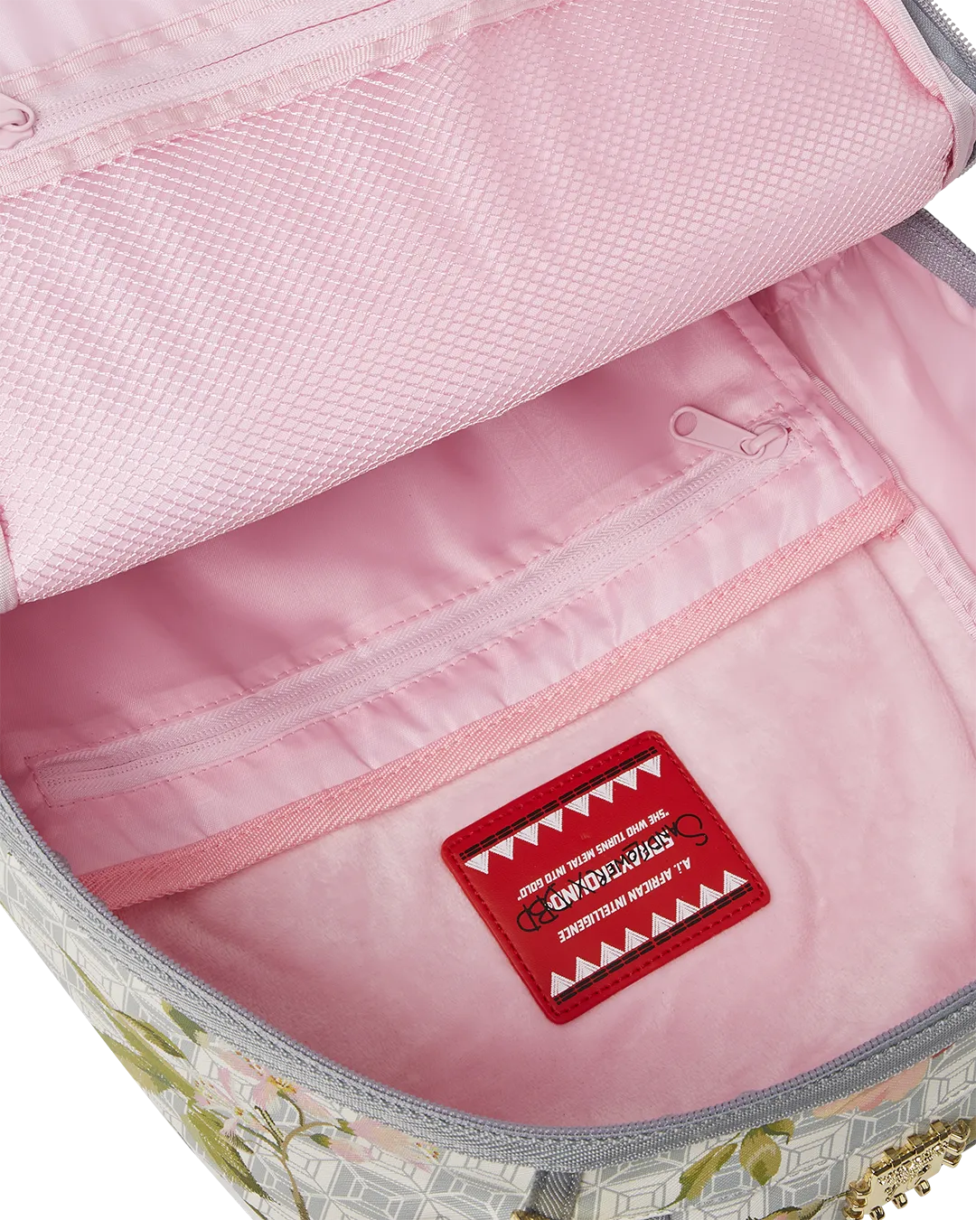 Dimensions: 18″ x 6″ x 11.5″ ? Front zipper pocket ? Side pockets ? Zippered Stash pocket ? Separate velour sunglass compartment ? Ergonomic mesh back padding ? Adjustable Straps for custom sizing ? Gold zippers with metal hardware ? Metal “Sprayground Authentic” badge ? Slide through back sleeve connects to carry-on luggage to free your hands