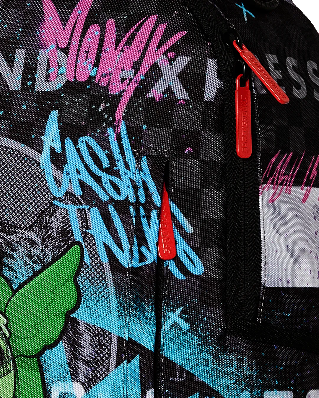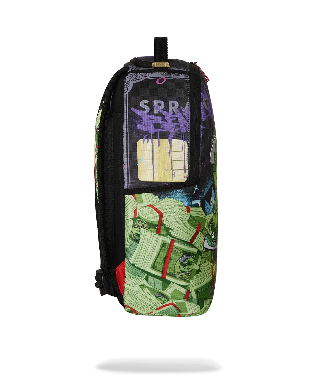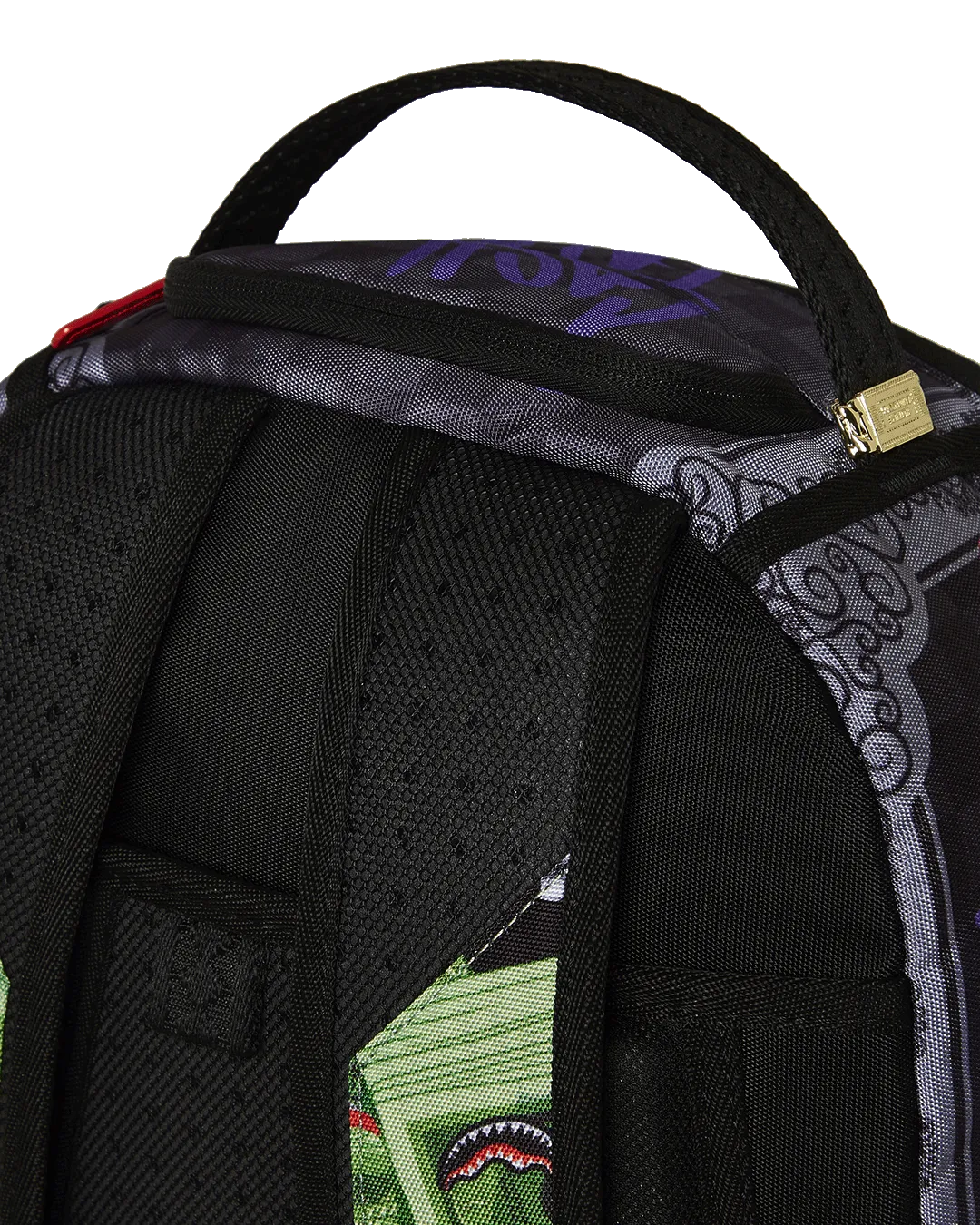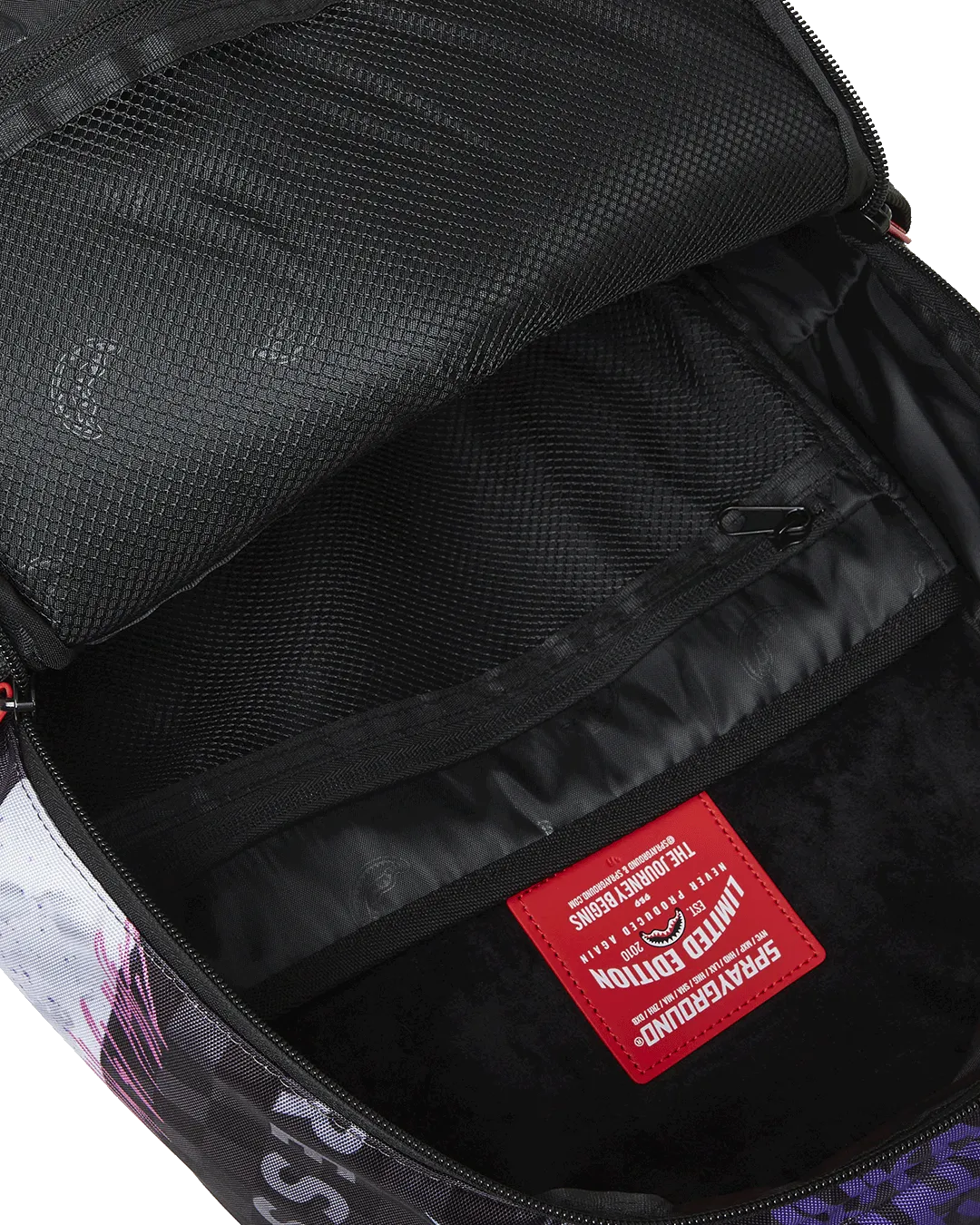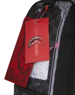 Dimensions: 18″ x 6″ x 11.5″ ? Front zipper pocket ? Side pockets ? Zippered Stash pocket ? Separate velour sunglass compartment ? Ergonomic mesh back padding ? Adjustable Straps for custom sizing ? Gold zippers with metal hardware ? Metal “Sprayground Authentic” badge ? Slide through back sleeve connects to carry-on luggage to free your hands
