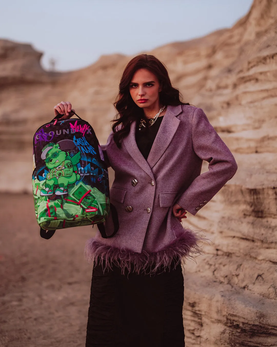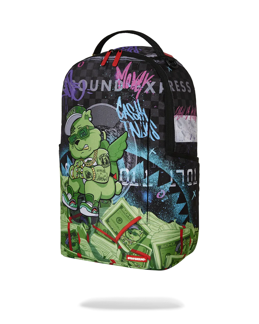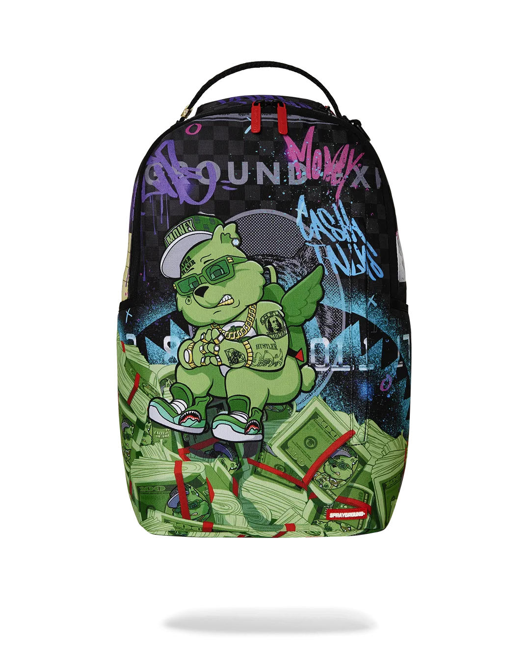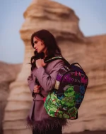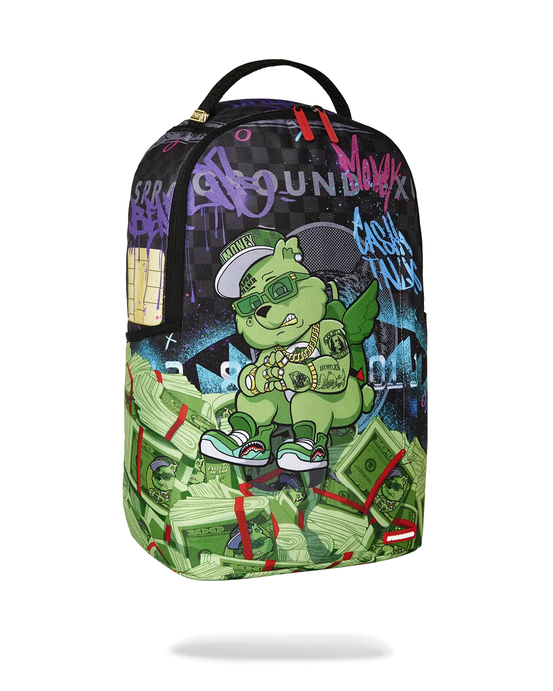 Dimensions: 18″ x 6″ x 11.5″ ? Front zipper pocket ? Side pockets ? Zippered Stash pocket ? Separate velour sunglass compartment ? Ergonomic mesh back padding ? Adjustable Straps for custom sizing ? Gold zippers with metal hardware ? Metal “Sprayground Authentic” badge ? Slide through back sleeve connects to carry-on luggage to free your hands