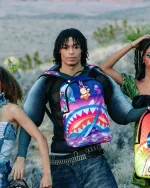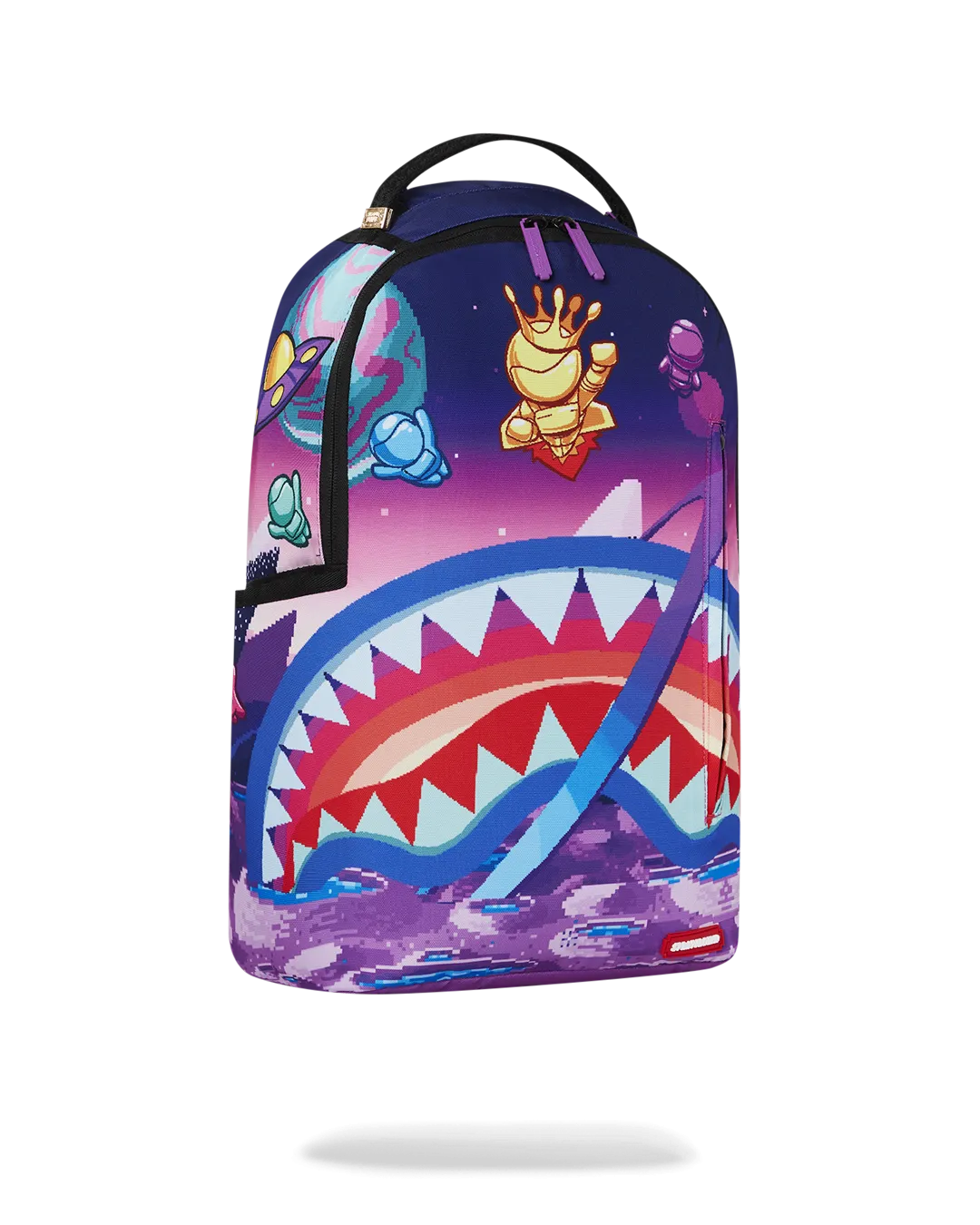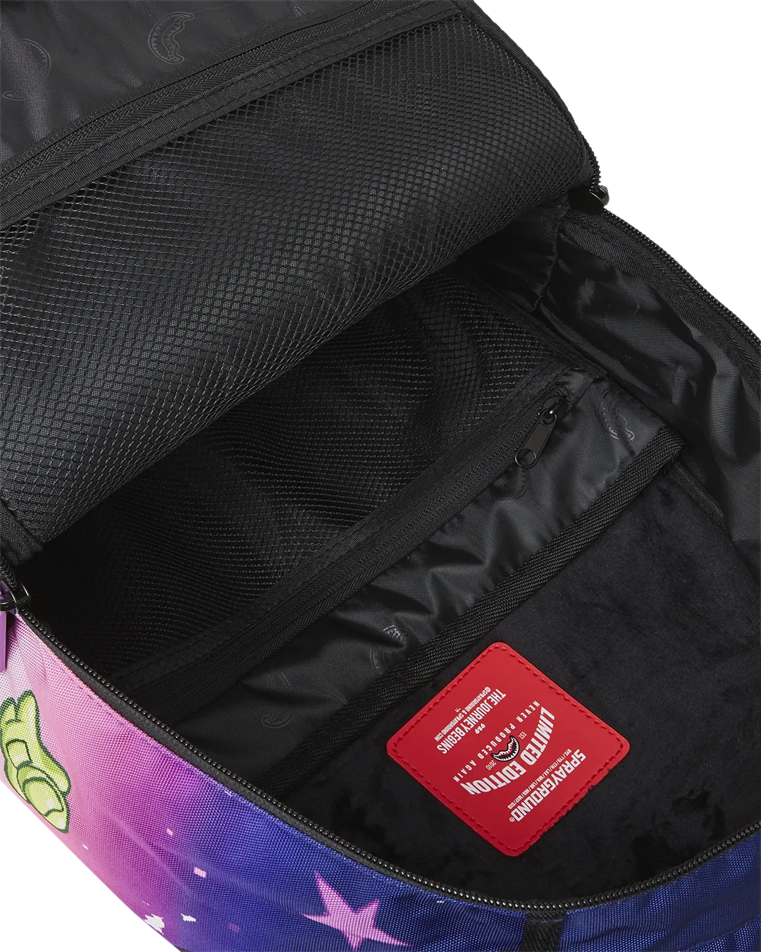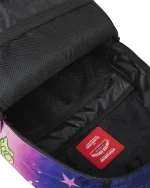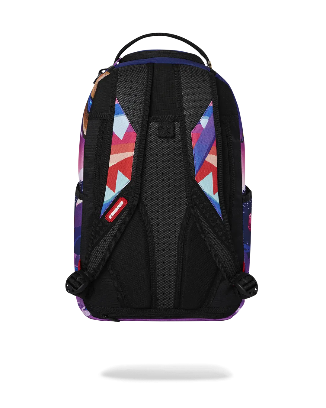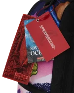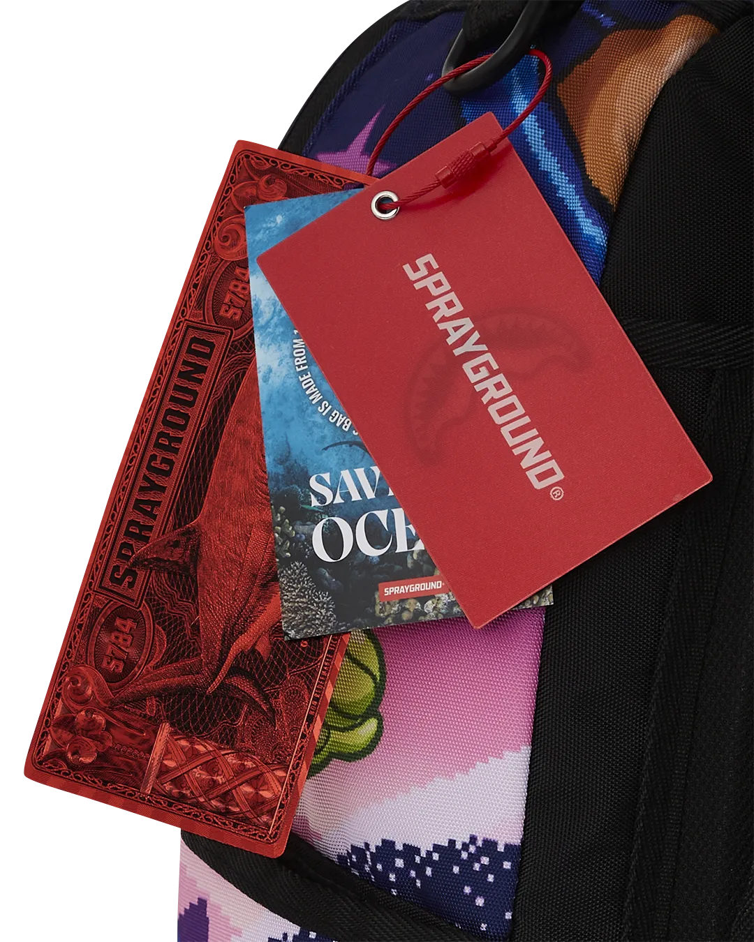 Dimensions: 18″ x 6″ x 11.5″ ? Front zipper pocket ? Side pockets ? Zippered Stash pocket ? Separate velour sunglass compartment ? Ergonomic mesh back padding ? Adjustable Straps for custom sizing ? Gold zippers with metal hardware ? Metal “Sprayground Authentic” badge ? Slide through back sleeve connects to carry-on luggage to free your hands
