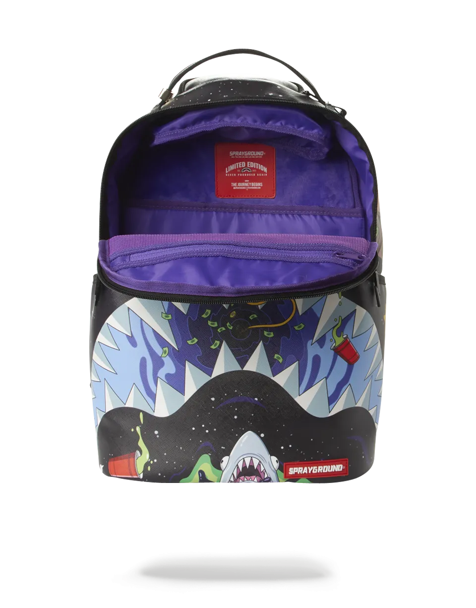 Dimensions: 18″ x 6″ x 11.5″ ? Side pockets ? Zippered Stash pocket ? Separate velour sunglass compartment ? Ergonomic mesh back padding ? Adjustable Straps for custom sizing ? Black lightning bolt zippers with metal hardware ? Metal “Sprayground Authentic” badge ? Slide through back sleeve connects to carry-on luggage to free your hands