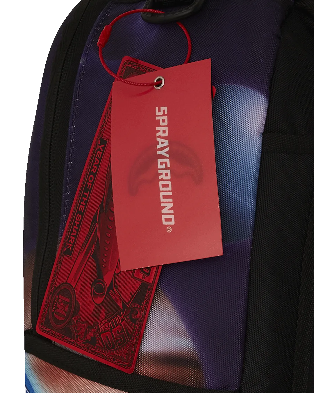 Dimensions: 18″ x 6″ x 11.5″ ? Front zipper pocket ? Side pockets ? Zippered Stash pocket ? Separate velour sunglass compartment ? Ergonomic mesh back padding ? Adjustable Straps for custom sizing ? Gold zippers with metal hardware ? Metal “Sprayground Authentic” badge ? Slide through back sleeve connects to carry-on luggage to free your hands