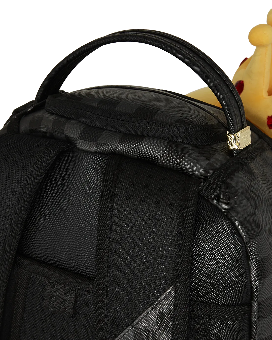 Dimensions: 18″ x 6″ x 11.5″ ? Front zipper pocket ? Side pockets ? Zippered Stash pocket ? Separate velour sunglass compartment ? Ergonomic mesh back padding ? Adjustable Straps for custom sizing ? Gold zippers with metal hardware ? Metal “Sprayground Authentic” badge ? Slide through back sleeve connects to carry-on luggage to free your hands