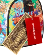 Dimensions: 8″ x 7.5″ x 13″? Metal zipper pocket??Back Zippers ?Zippered sneaker pocket ? gold zippers ? Adjustable Straps for custom sizing ?Metal Zippers with Metal Hardware ? bag of Sprayground money