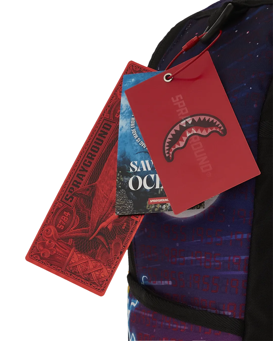 Dimensions: 18″ x 6″ x 11.5″ ? Front zipper pocket ? Side pockets ? Zippered Stash pocket ? Separate velour sunglass compartment ? Ergonomic mesh back padding ? Adjustable Straps for custom sizing ? Gold zippers with metal hardware ? Metal “Sprayground Authentic” badge ? Slide through back sleeve connects to carry-on luggage to free your hands