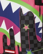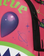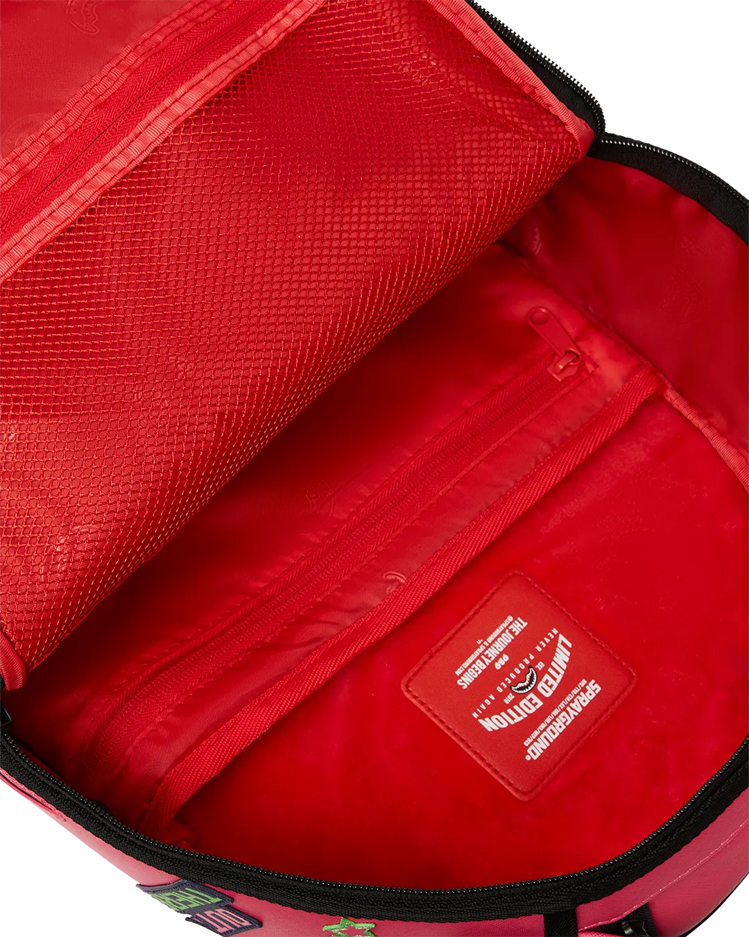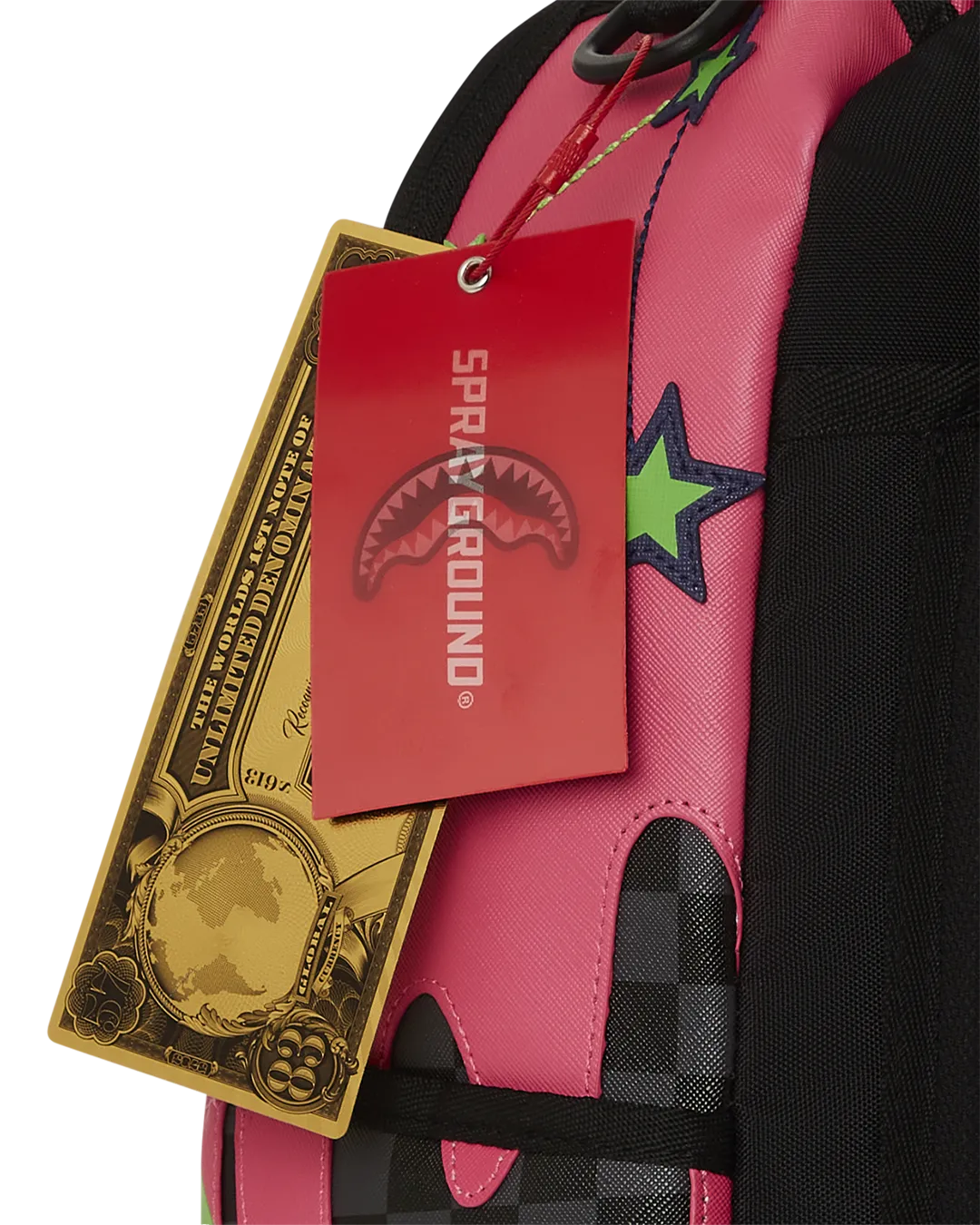 Dimensions: 18″ x 6″ x 11.5″ ? Front zipper pocket ? Side pockets ? Zippered Stash pocket ? Separate velour sunglass compartment ? Ergonomic mesh back padding ? Adjustable Straps for custom sizing ? Gold zippers with metal hardware ? Metal “Sprayground Authentic” badge ? Slide through back sleeve connects to carry-on luggage to free your hands