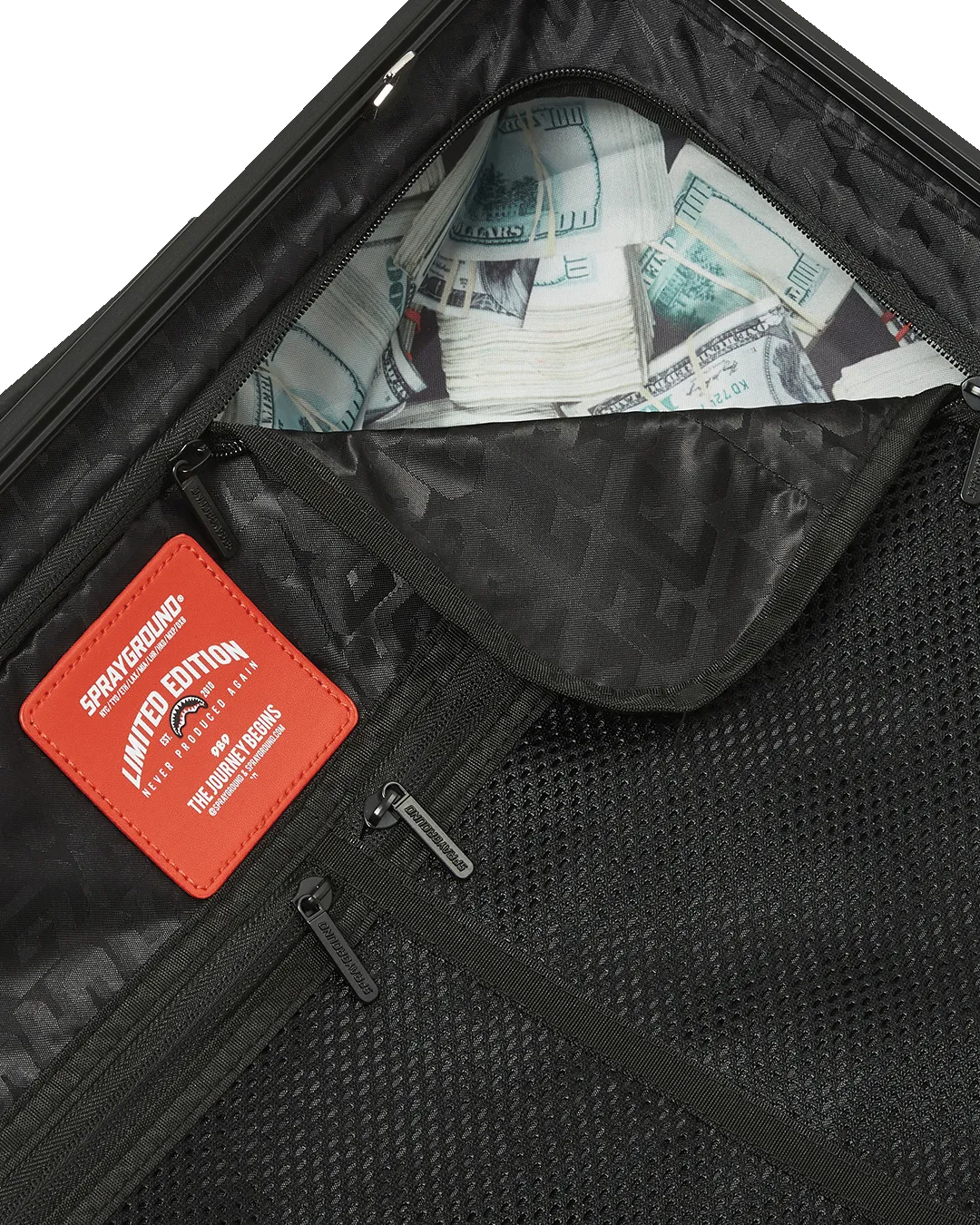 Sprayground products are rigorously tested to ensure that the travel products you trust meet stringent standards. Consequently, if a problem occurs with this Sprayground luggage and the problem is caused by manufacturing defects in material and workmanship, Sprayground will, in its discretion, either fix or replace the luggage in accordance with the warranty terms and conditions stated herein. The warranty provided for herein applies only to the first purchaser or gift recipient of the luggage for a period of one year starting from the date this luggage was purchased. This warranty covers only manufacturing defects and does not cover any damage caused by misuse such as transportation of unusual items, neglect, accidents, abrasion, exposure to extreme temperatures, solvents, acids, water, normal wear and tear or transport damage. The warranty provided herein is limited to the value of the Product. Manufacturing specifications are subject to change without notice. Product is made in limited edition production and if product needs to be replaced and it is not available anymore, then either a store credit will be given if the product can not be replaced.