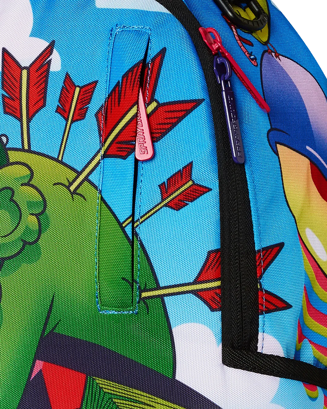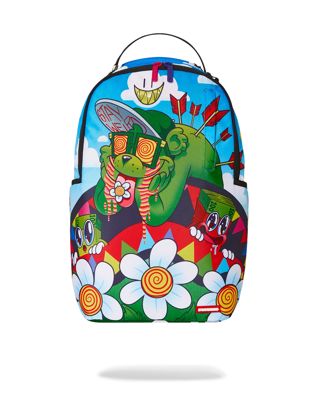 Dimensions: 18″ x 6″ x 11.5″ ? Front zipper pocket ? Side pockets ? Zippered Stash pocket ? Separate velour sunglass compartment ? Ergonomic mesh back padding ? Adjustable Straps for custom sizing ? Gold zippers with metal hardware ? Metal “Sprayground Authentic” badge ? Slide through back sleeve connects to carry-on luggage to free your hands
