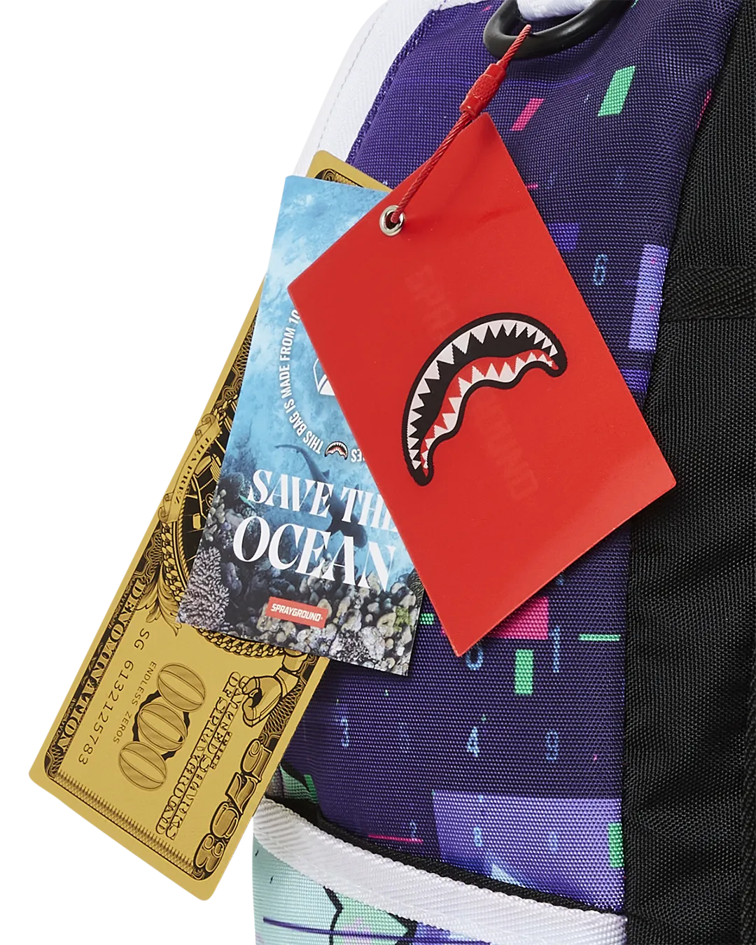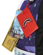 Dimensions: 18″ x 6″ x 11.5″ ? Front zipper pocket ? Side pockets ? Zippered Stash pocket ? Separate velour sunglass compartment ? Ergonomic mesh back padding ? Adjustable Straps for custom sizing ? Gold zippers with metal hardware ? Metal “Sprayground Authentic” badge ? Slide through back sleeve connects to carry-on luggage to free your hands