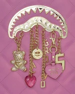 Quilted PVC backpack with gold metal sharkmouth with hanging metal and PVC charms attached. Handle with care!