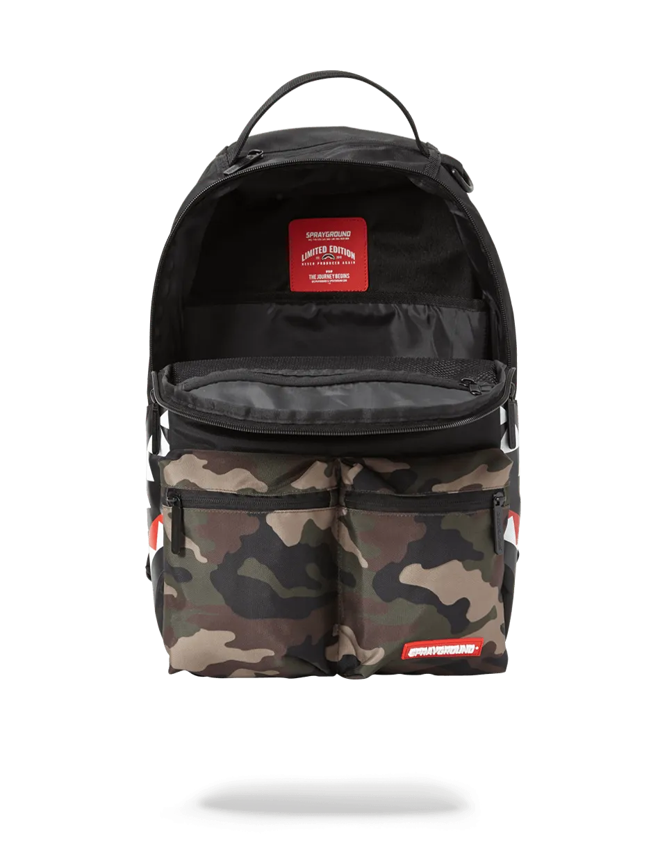 Dimensions: 18″ x 6″ x 11.5″ ? 2 Front zippered pockets ? Side pockets ? Zippered Stash pocket ? Ergonomic mesh back padding ? Adjustable Straps for custom sizing ? Nylon Zippers with Metal Hardware ? Metal “Sprayground Authentic” badge ? Slide through back sleeve connects to Carry on luggage to free your hands