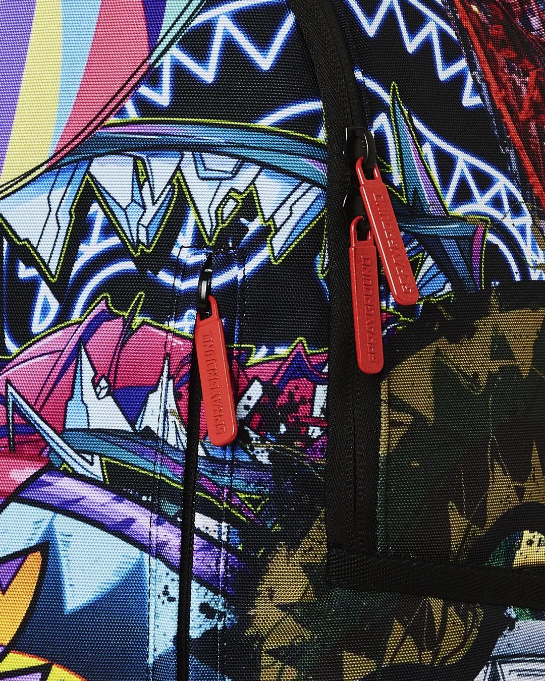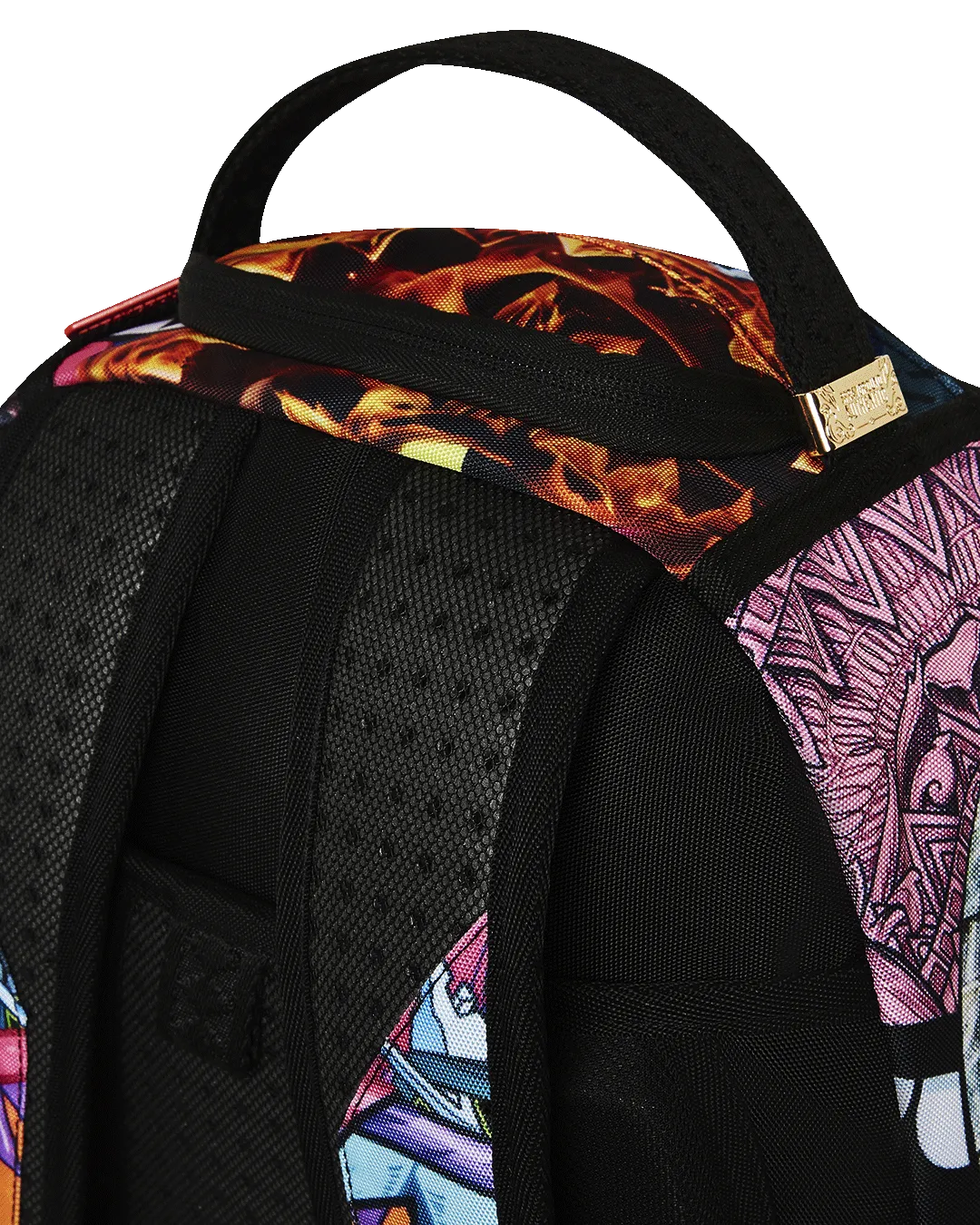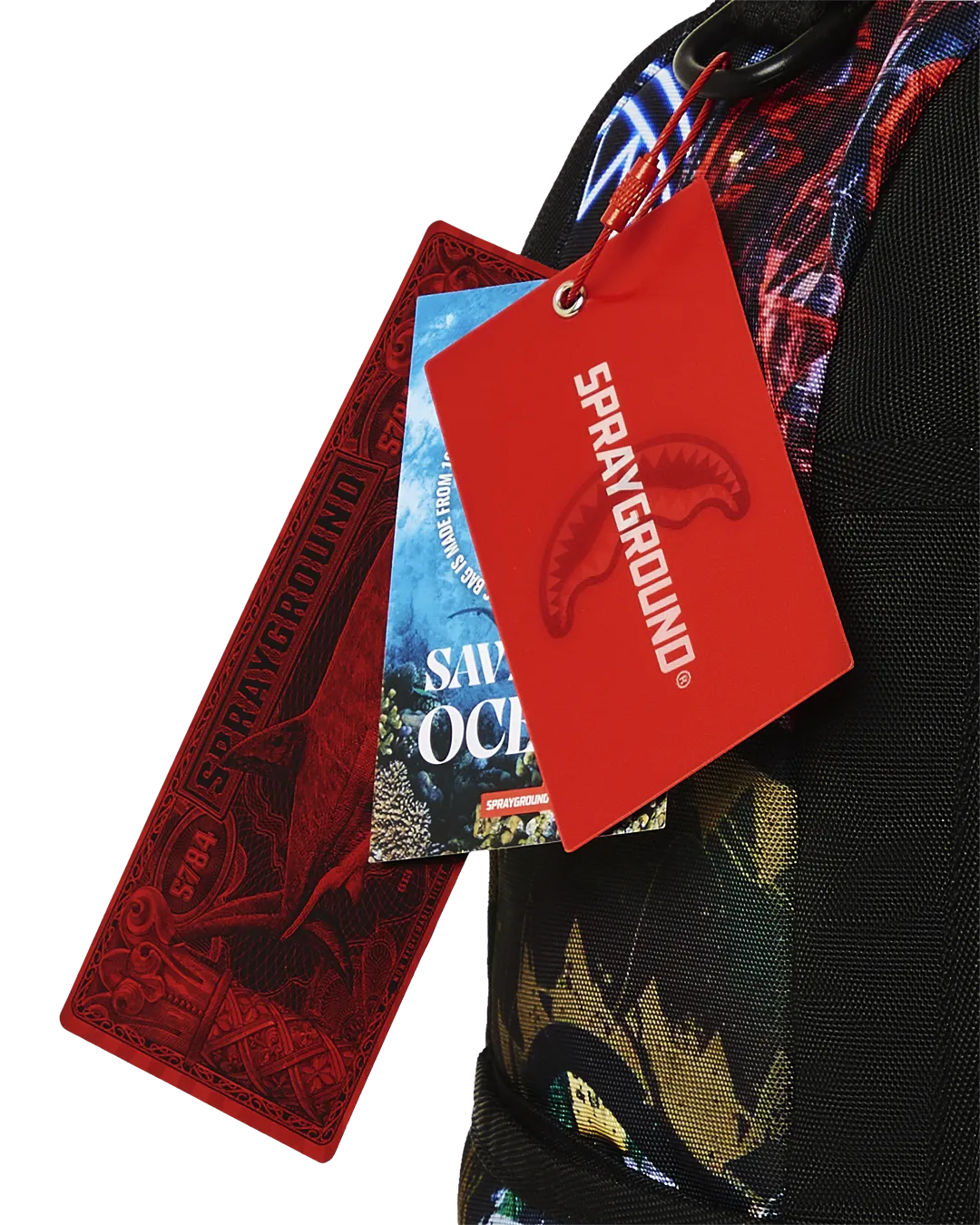 Dimensions: 18″ x 6″ x 11.5″ ? Front zipper pocket ? Side pockets ? Zippered Stash pocket ? Separate velour sunglass compartment ? Ergonomic mesh back padding ? Adjustable Straps for custom sizing ? Gold zippers with metal hardware ? Metal “Sprayground Authentic” badge ? Slide through back sleeve connects to carry-on luggage to free your hands