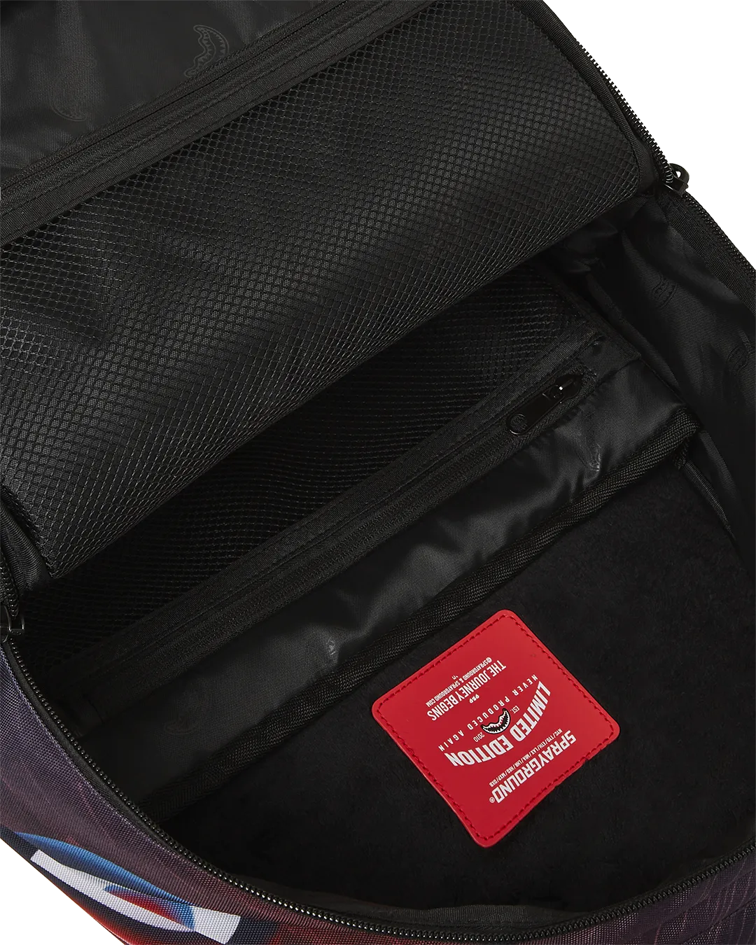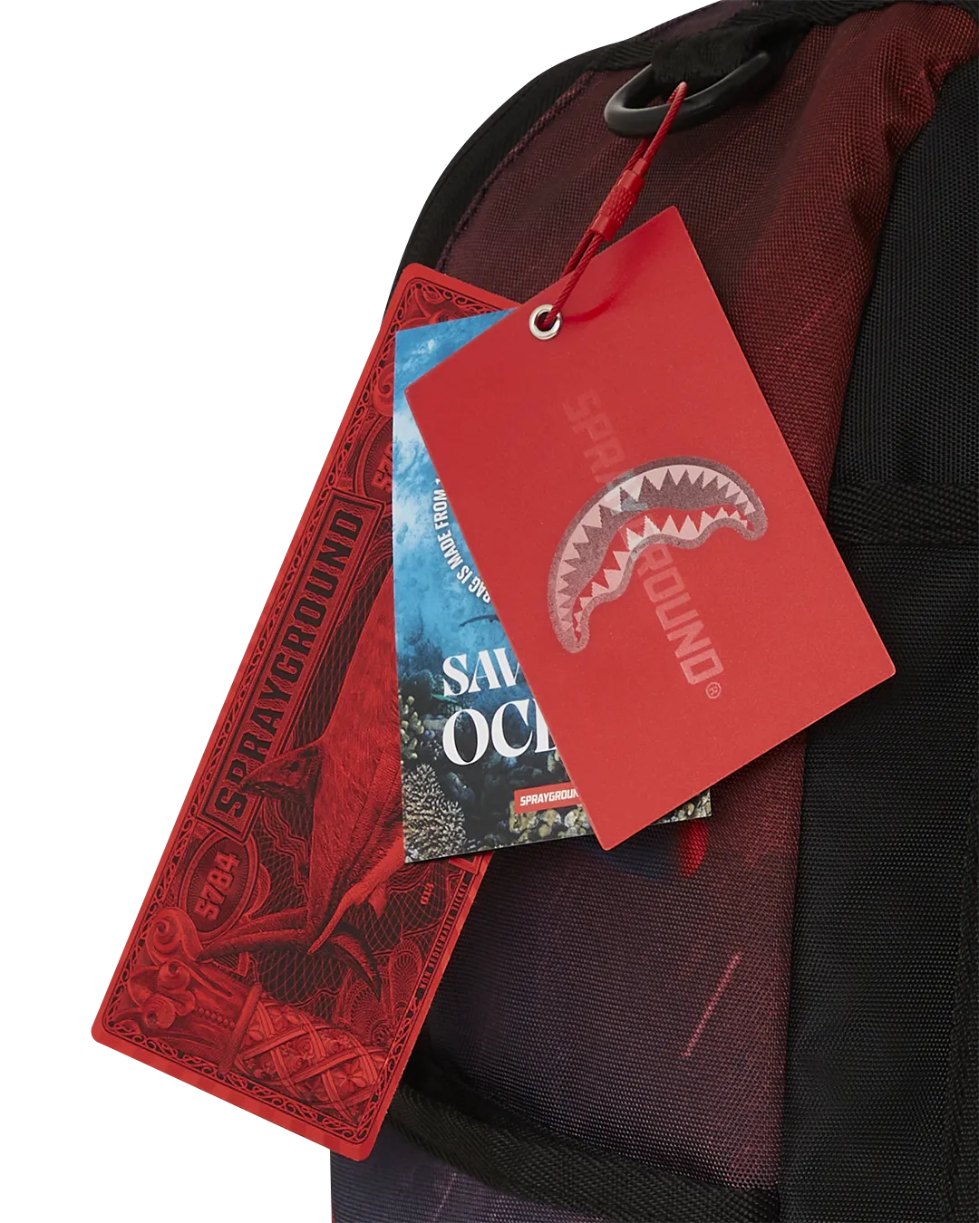 Dimensions: 18″ x 6″ x 11.5″ ? Front zipper pocket ? Side pockets ? Zippered Stash pocket ? Separate velour sunglass compartment ? Ergonomic mesh back padding ? Adjustable Straps for custom sizing ? Gold zippers with metal hardware ? Metal “Sprayground Authentic” badge ? Slide through back sleeve connects to carry-on luggage to free your hands