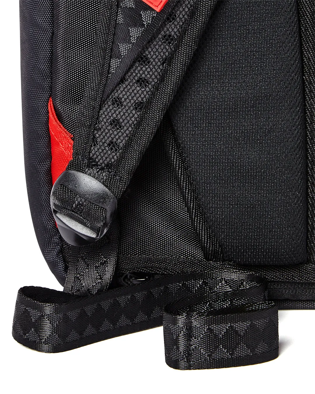 Dimensions: 18″ x 6″ x 11.5″ ? Front zipper pocket ? Side pockets ? Zippered Stash pocket ? Separate velour sunglass compartment ? Ergonomic mesh back padding ? Adjustable Straps for custom sizing ? Gold zippers with metal hardware ? Metal “Sprayground Authentic” badge ? Slide through back sleeve connects to carry-on luggage to free your hands