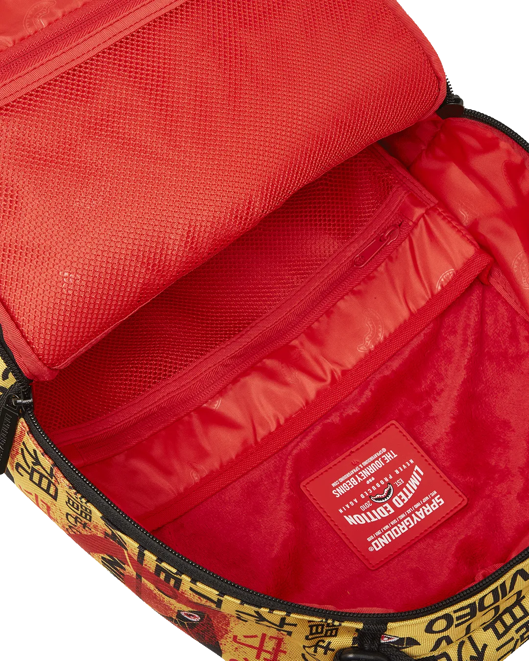 Dimensions: 18″ x 6″ x 11.5″ ? Front zipper pocket ? Side pockets ? Zippered Stash pocket ? Separate velour sunglass compartment ? Ergonomic mesh back padding ? Adjustable Straps for custom sizing ? Gold zippers with metal hardware ? Metal “Sprayground Authentic” badge ? Slide through back sleeve connects to carry-on luggage to free your hands