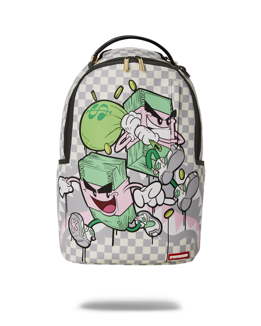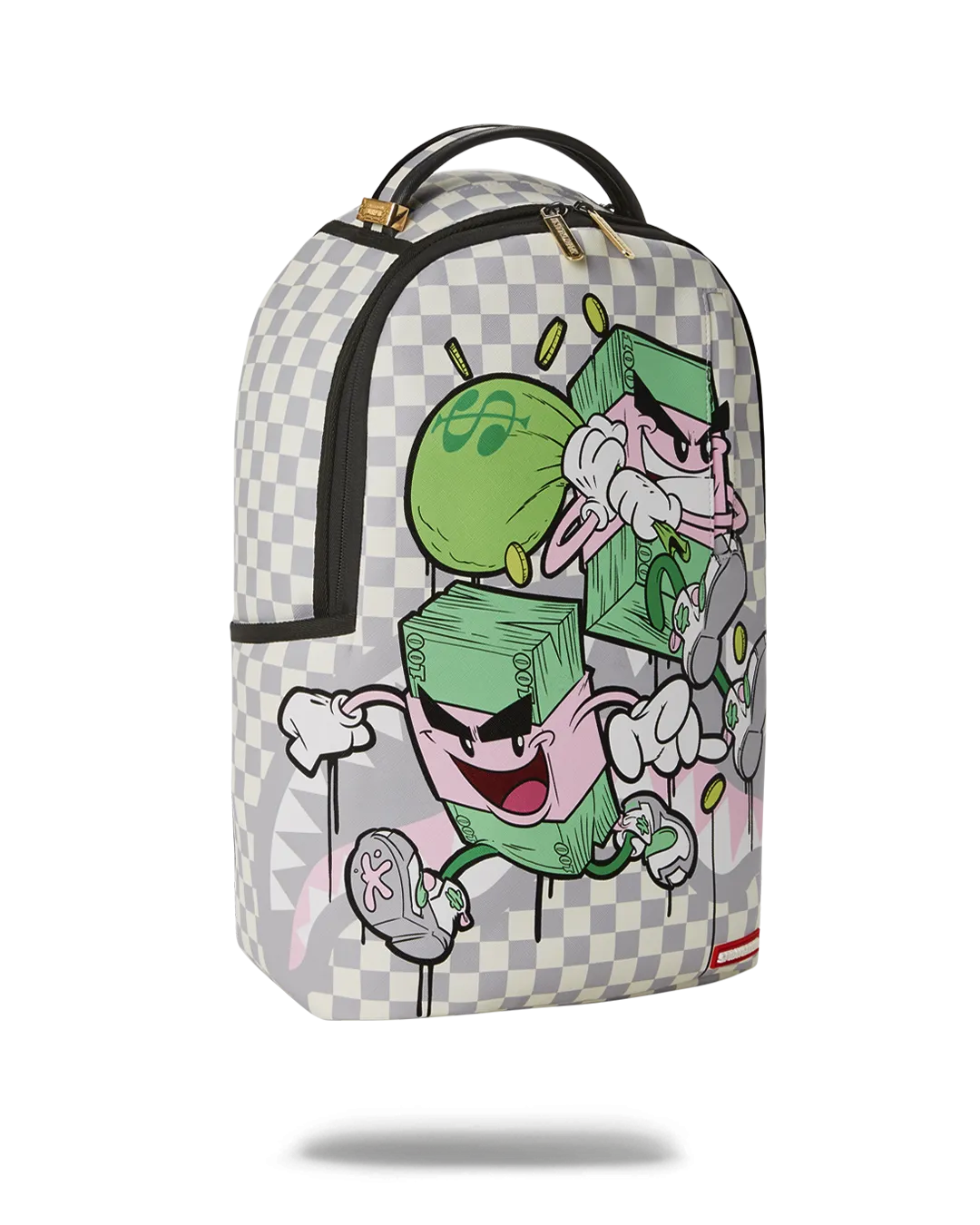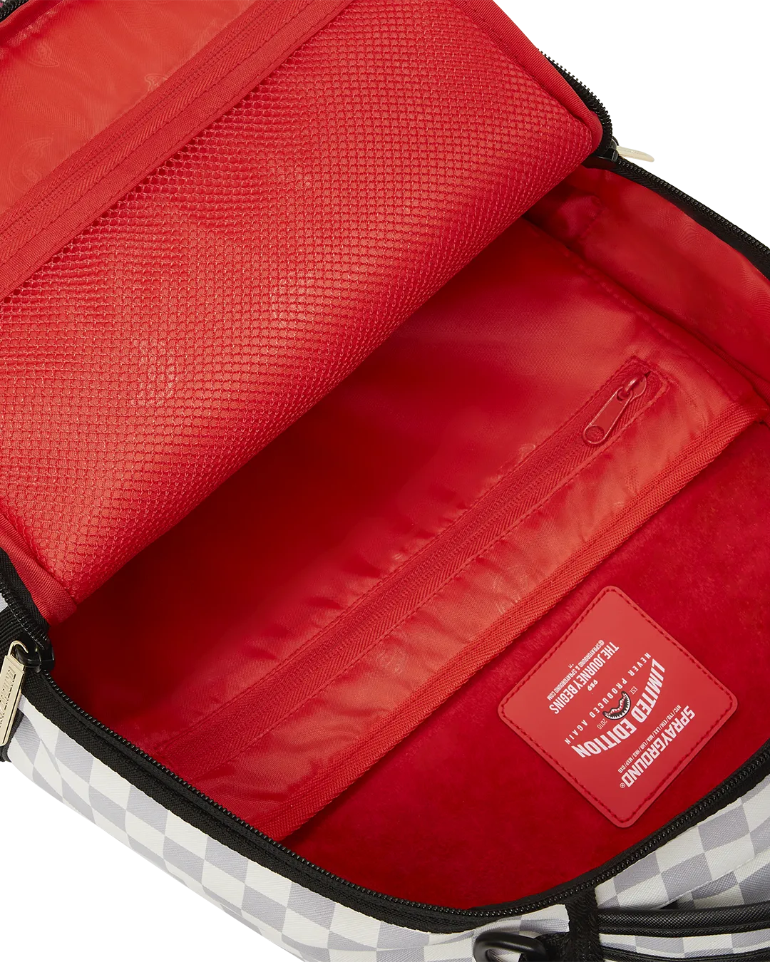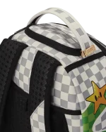 Dimensions: 18″ x 6″ x 11.5″ ? Front zipper pocket ? Side pockets ? Zippered Stash pocket ? Separate velour sunglass compartment ? Ergonomic mesh back padding ? Adjustable Straps for custom sizing ? Gold zippers with metal hardware ? Metal “Sprayground Authentic” badge ? Slide through back sleeve connects to carry-on luggage to free your hands