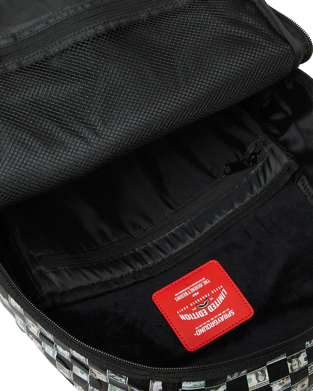 Dimensions: 18″ x 6″ x 11.5″ ? Front zipper pocket ? Side pockets ? Zippered Stash pocket ? Separate velour sunglass compartment ? Ergonomic mesh back padding ? Adjustable Straps for custom sizing ? Gold zippers with metal hardware ? Metal “Sprayground Authentic” badge ? Slide through back sleeve connects to carry-on luggage to free your hands