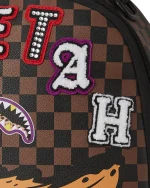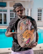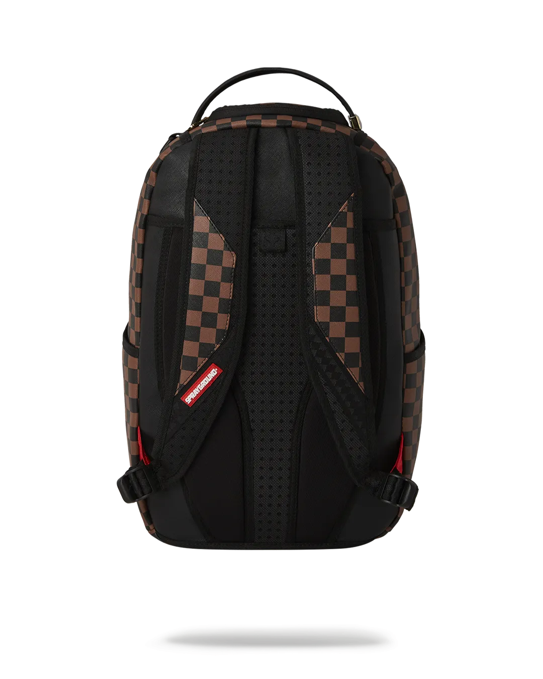 Dimensions: 18″ x 6″ x 11.5″ ? Front zipper pocket ? Side pockets ? Zippered Stash pocket ? Separate velour sunglass compartment ? Ergonomic mesh back padding ? Adjustable Straps for custom sizing ? Gold zippers with metal hardware ? Metal “Sprayground Authentic” badge ? Slide through back sleeve connects to carry-on luggage to free your hands