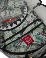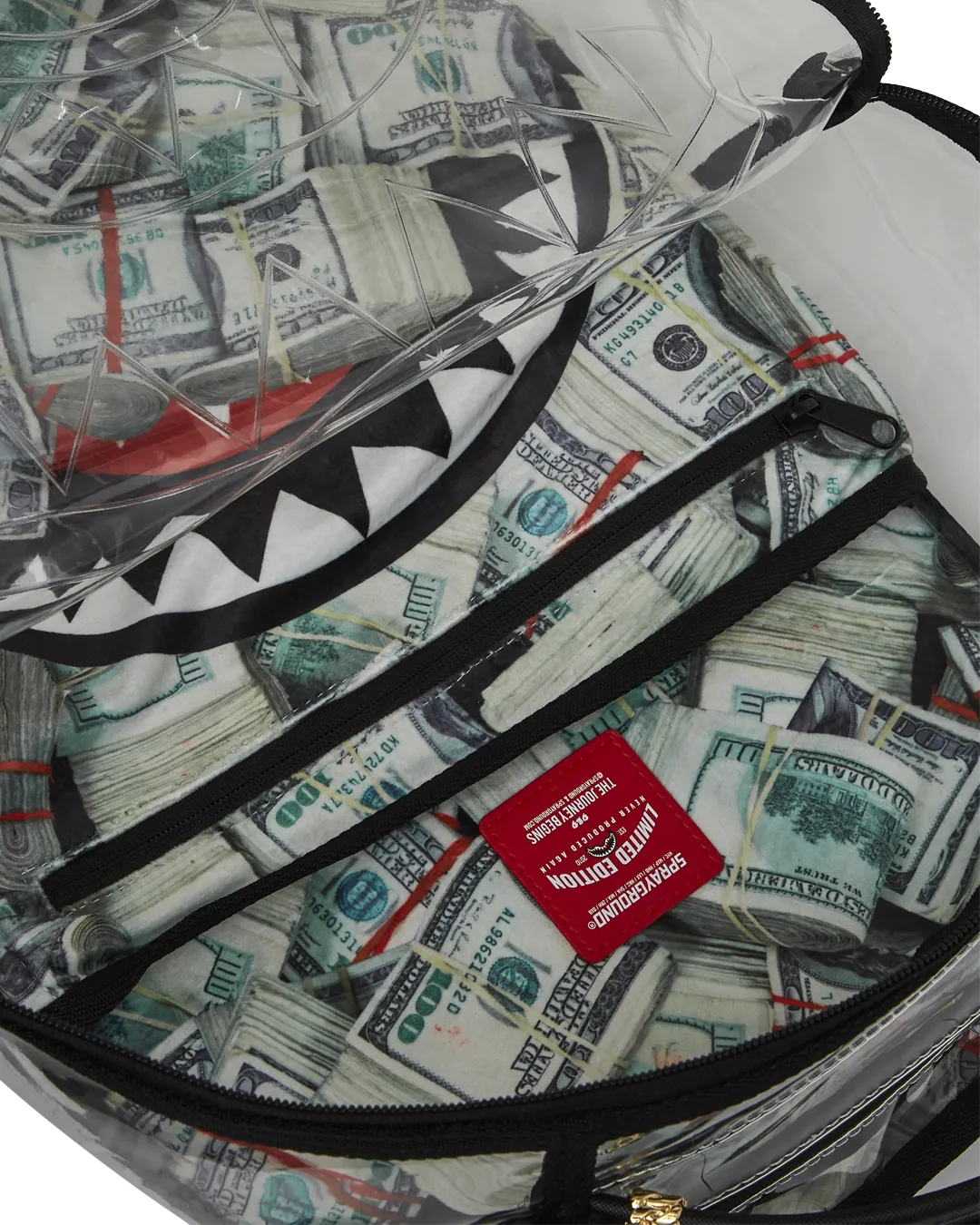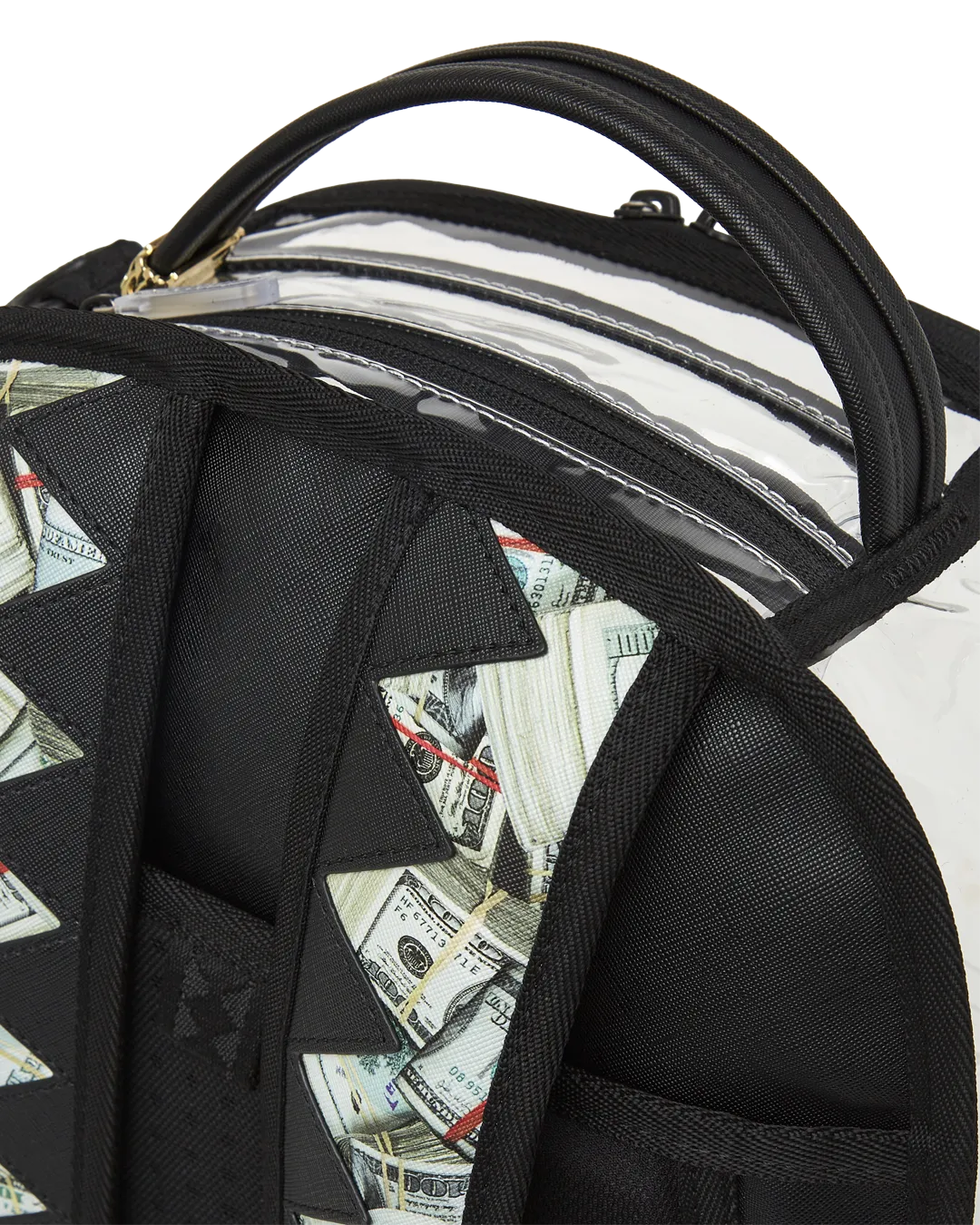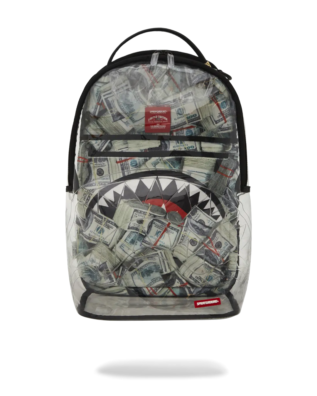 Clear PVC front, side, top, and bottom panels. Back panel features artwork of money.
