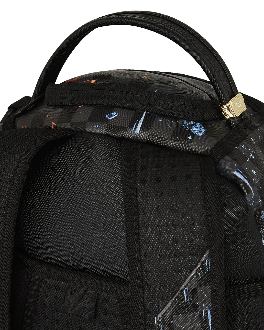 Dimensions: 18″ x 6″ x 11.5″ ? Front zipper pocket ? Side pockets ? Zippered Stash pocket ? Separate velour sunglass compartment ? Ergonomic mesh back padding ? Adjustable Straps for custom sizing ? Gold zippers with metal hardware ? Metal “Sprayground Authentic” badge ? Slide through back sleeve connects to carry-on luggage to free your hands