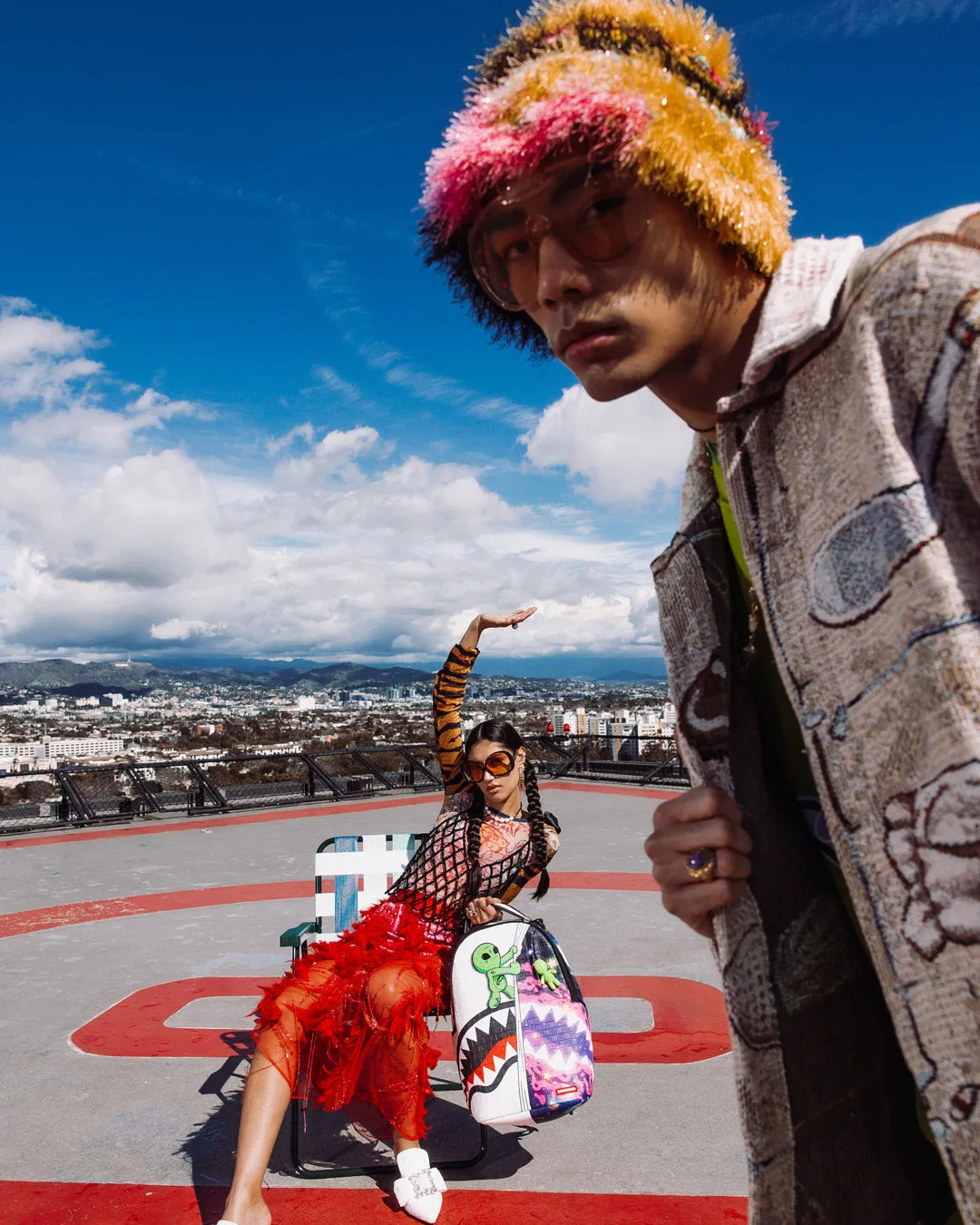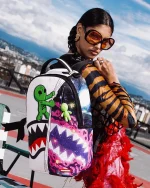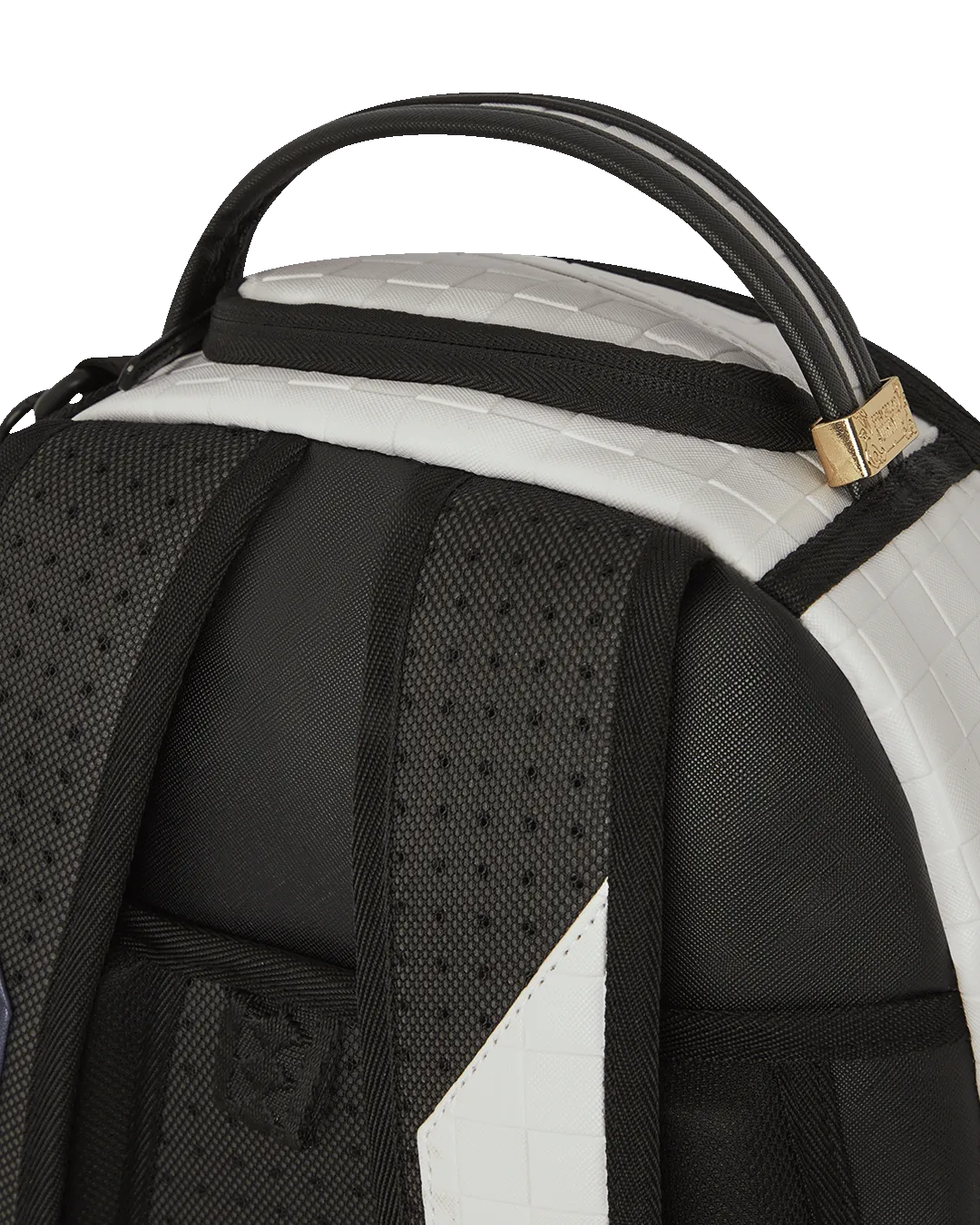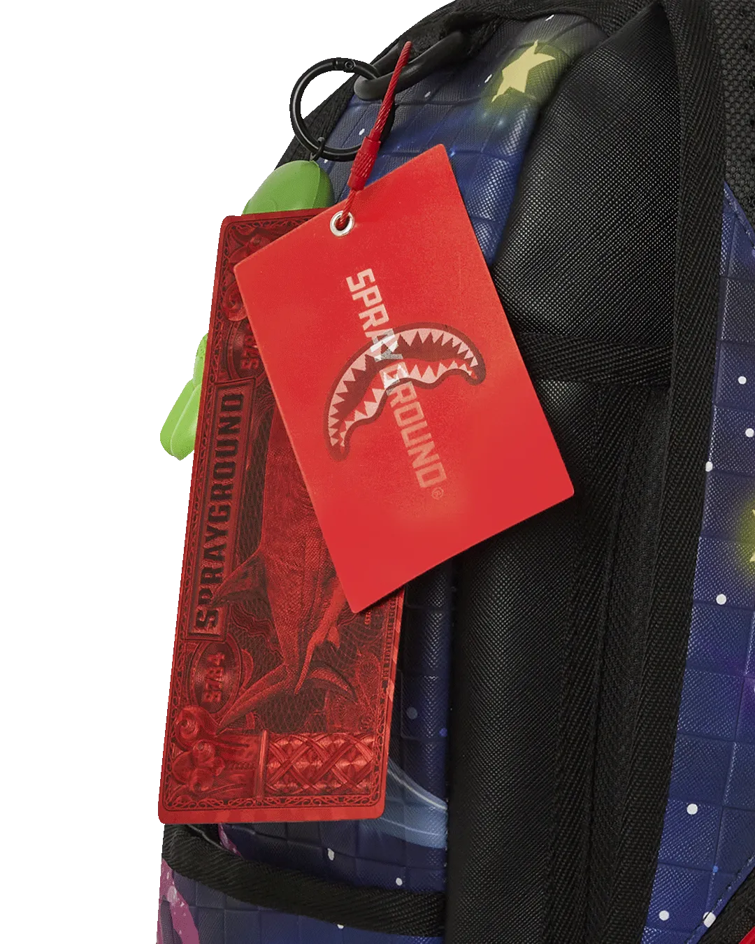 Dimensions: 18″ x 6″ x 11.5″ ? Front zipper pocket ? Side pockets ? Zippered Stash pocket ? Separate velour sunglass compartment ? Ergonomic mesh back padding ? Adjustable Straps for custom sizing ? Gold zippers with metal hardware ? Metal “Sprayground Authentic” badge ? Slide through back sleeve connects to carry-on luggage to free your hands