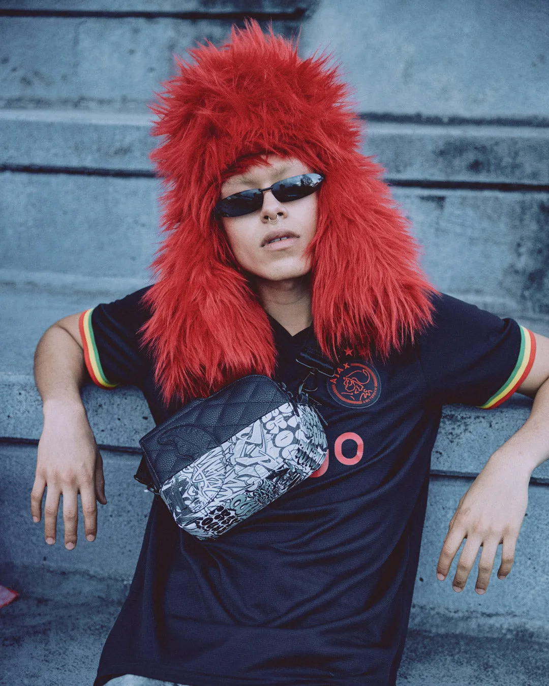 1/2 Quilted ?& 1/2 Printed PVC with Cut & Sewn shark mouth details and matte black hardware?