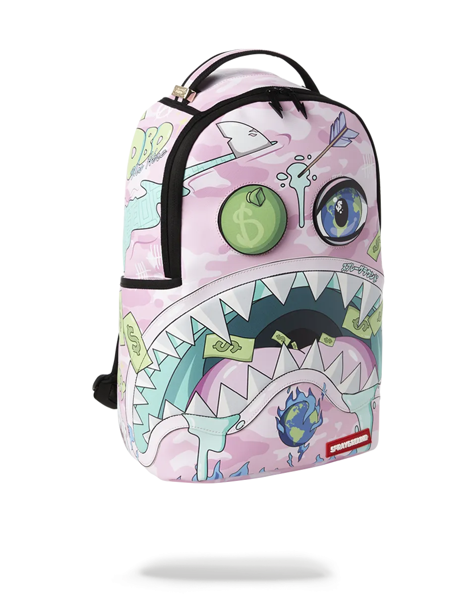 Dimensions: 18″ x 6″ x 11.5″ ? Side pockets ? Zippered Stash pocket ? Separate velour sunglass compartment ? Ergonomic mesh back padding ? Adjustable Straps for custom sizing ? Black lightning bolt zippers with metal hardware ? Metal “Sprayground Authentic” badge ? Slide through back sleeve connects to carry-on luggage to free your hands