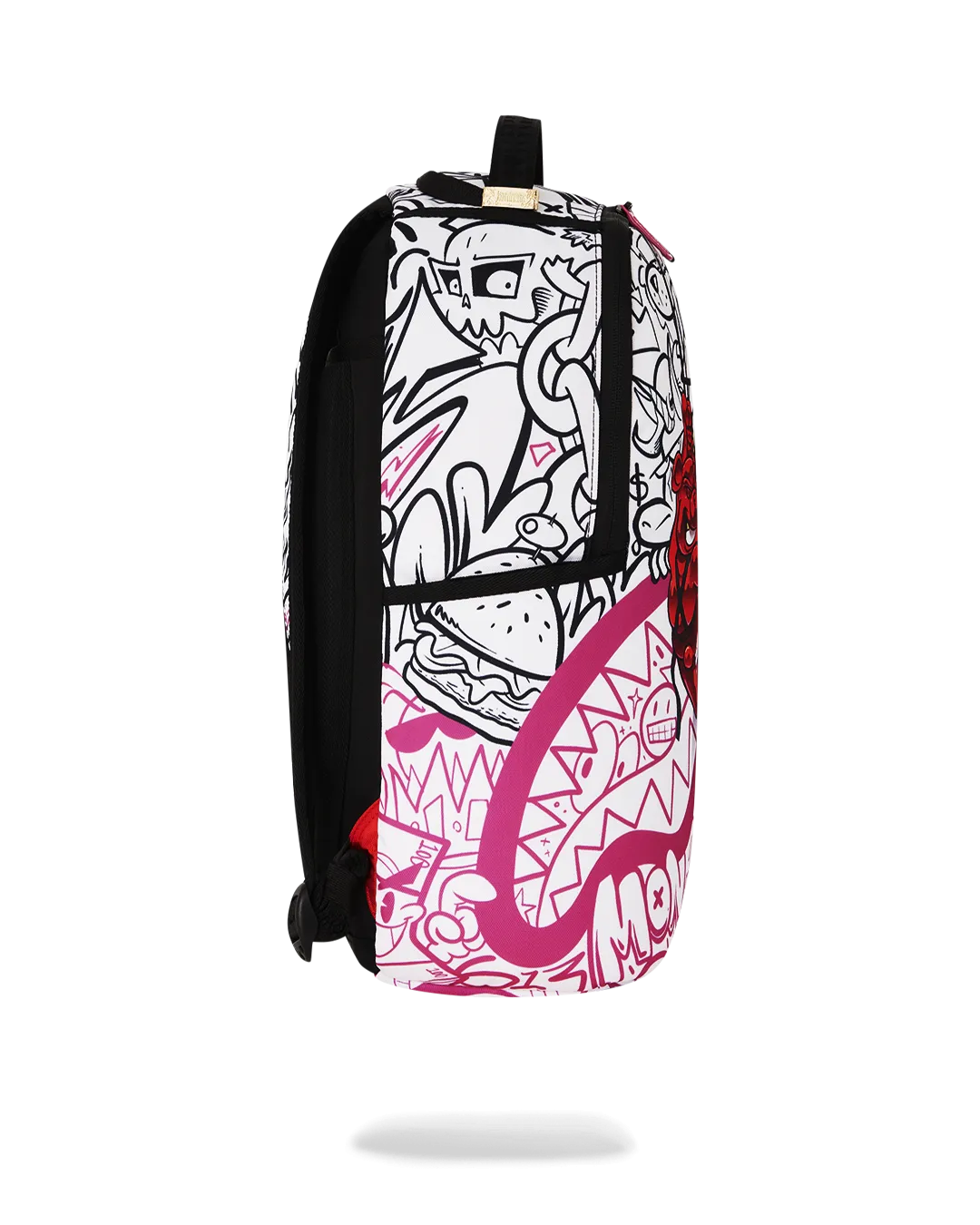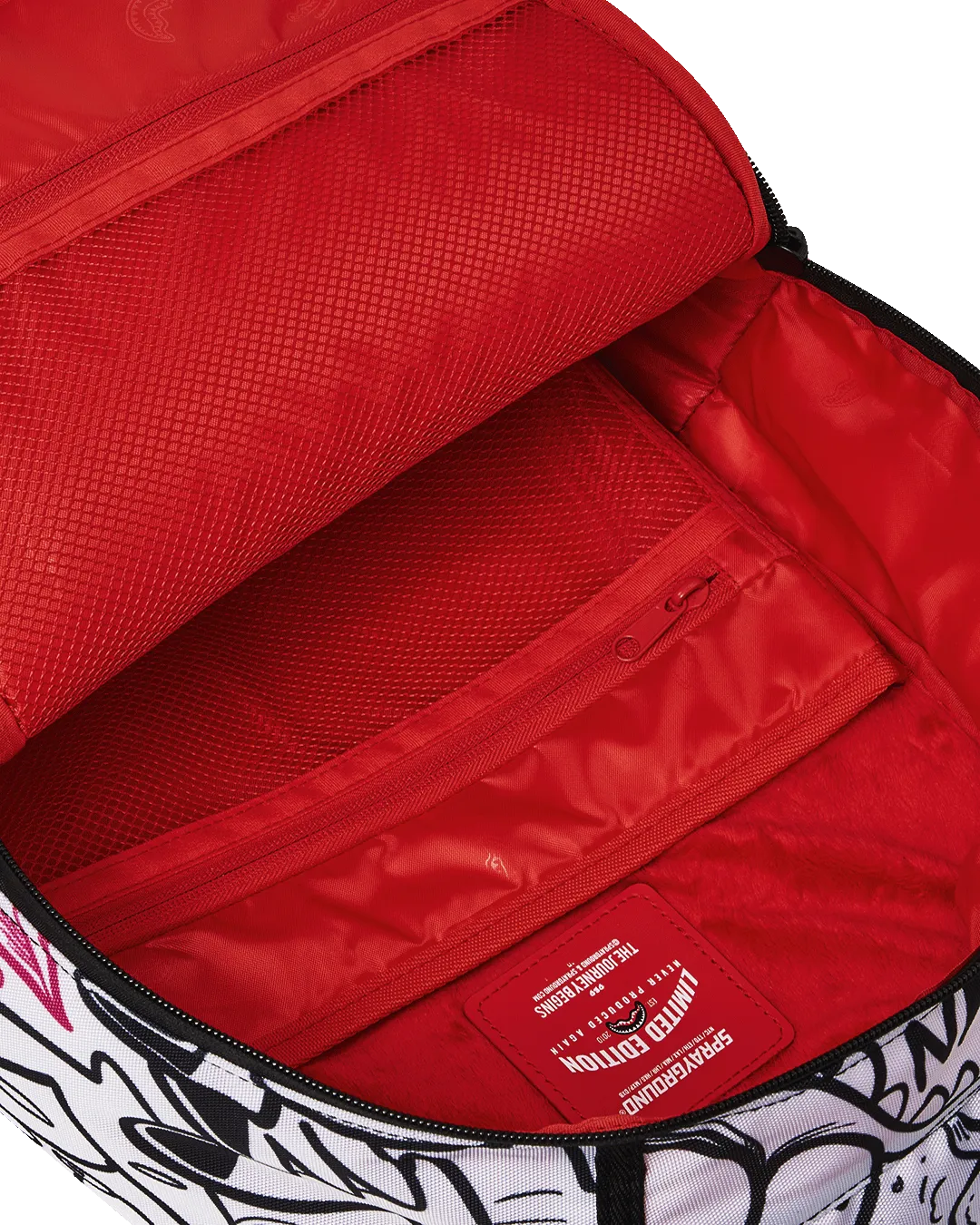 Dimensions: 18″ x 6″ x 11.5″ ? Front zipper pocket ? Side pockets ? Zippered Stash pocket ? Separate velour sunglass compartment ? Ergonomic mesh back padding ? Adjustable Straps for custom sizing ? Gold zippers with metal hardware ? Metal “Sprayground Authentic” badge ? Slide through back sleeve connects to carry-on luggage to free your hands