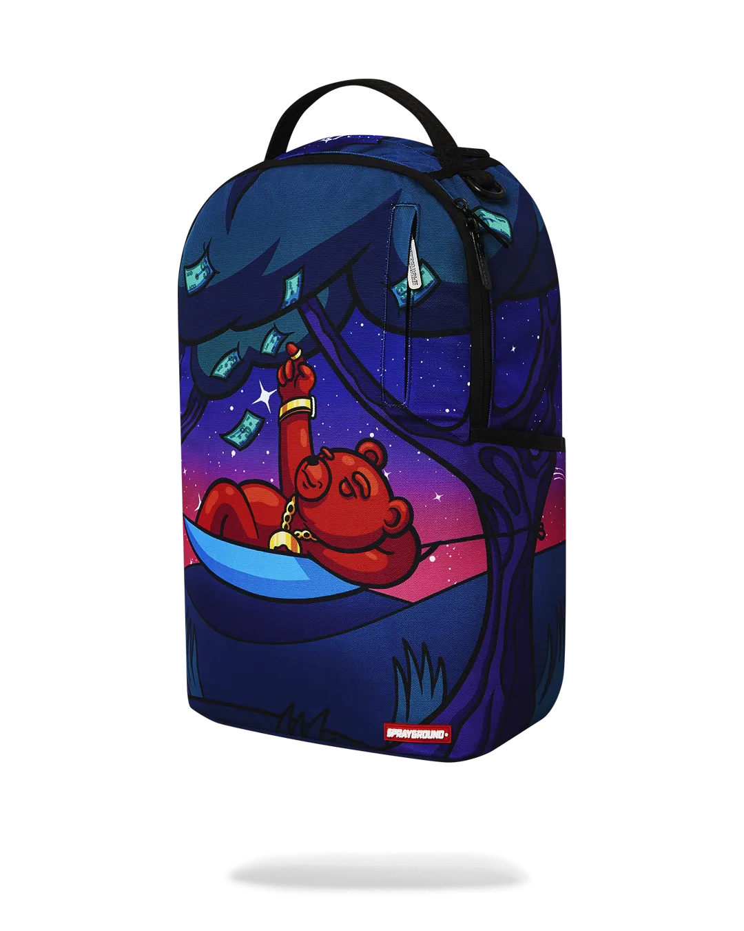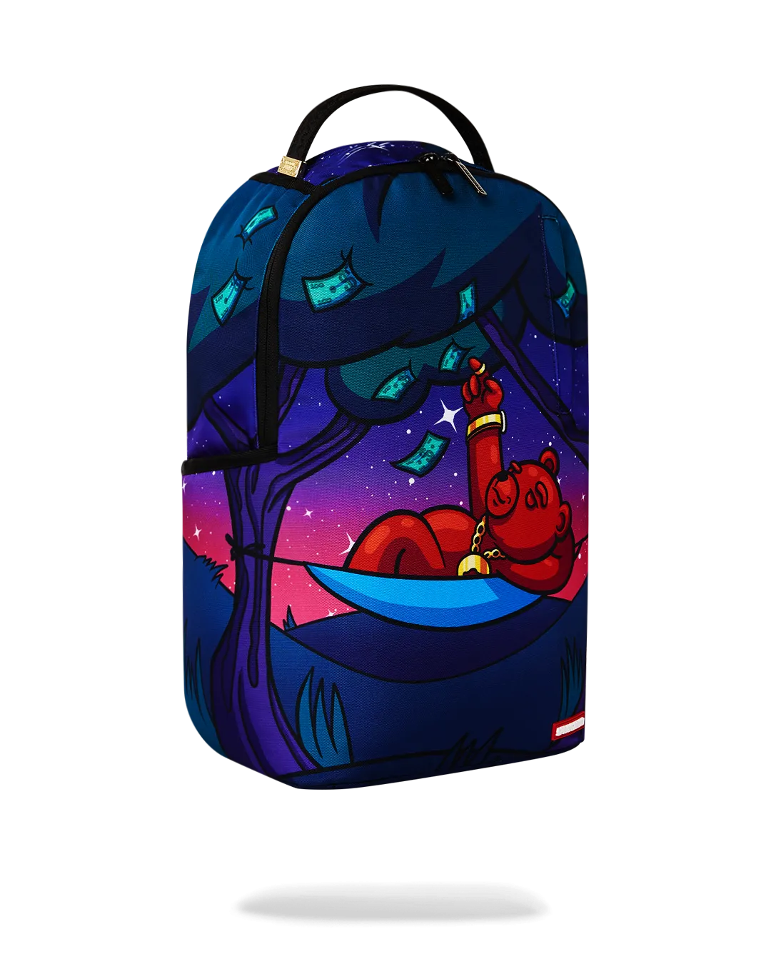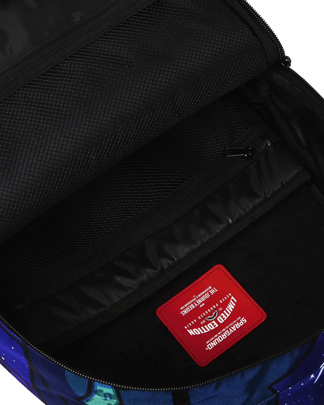 Dimensions: 18″ x 6″ x 11.5″ ? Front zipper pocket ? Side pockets ? Zippered Stash pocket ? Separate velour sunglass compartment ? Ergonomic mesh back padding ? Adjustable Straps for custom sizing ? Gold zippers with metal hardware ? Metal “Sprayground Authentic” badge ? Slide through back sleeve connects to carry-on luggage to free your hands