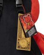 Dimensions: 18″ x 6″ x 11.5″ ? Front zipper pocket ? Side pockets ? Zippered Stash pocket ? Separate velour sunglass compartment ? Ergonomic mesh back padding ? Adjustable Straps for custom sizing ? Gold zippers with metal hardware ? Metal “Sprayground Authentic” badge ? Slide through back sleeve connects to carry-on luggage to free your hands