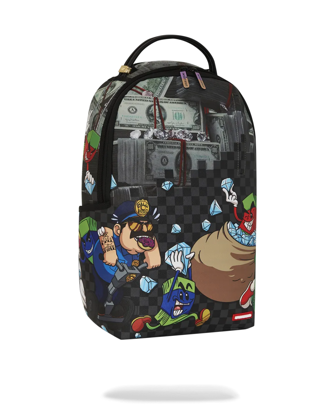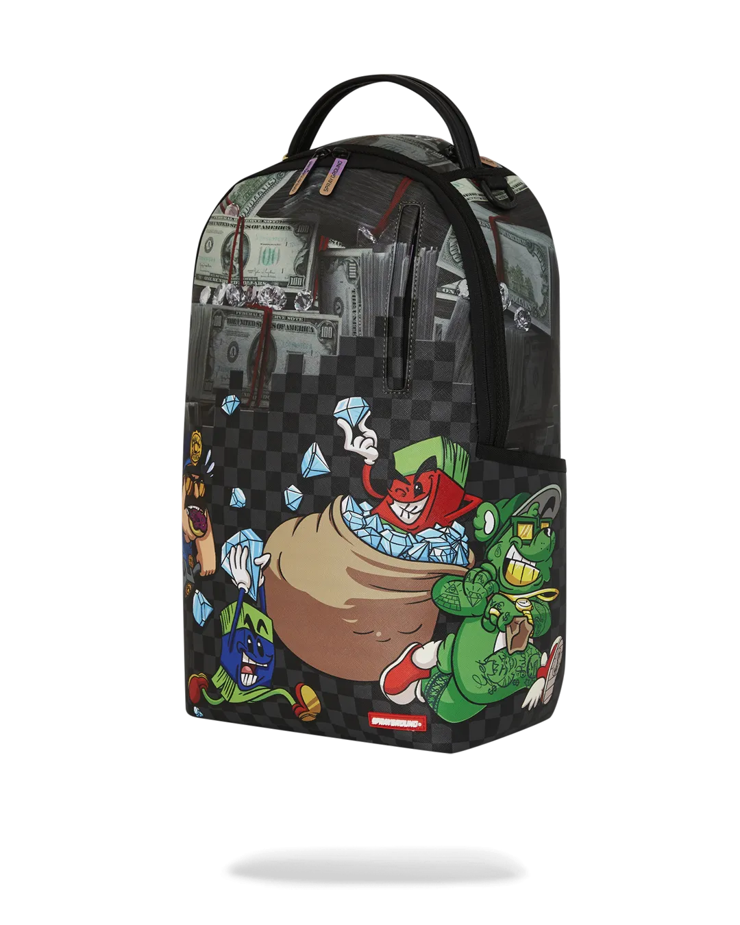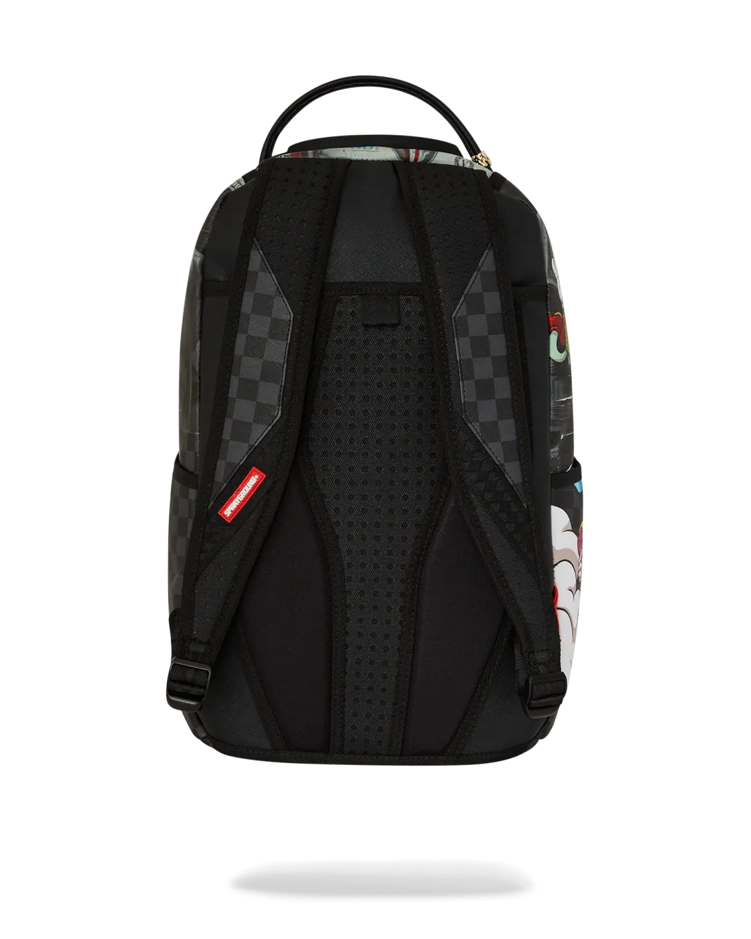 Dimensions: 18″ x 6″ x 11.5″ ? Front zipper pocket ? Side pockets ? Zippered Stash pocket ? Separate velour sunglass compartment ? Ergonomic mesh back padding ? Adjustable Straps for custom sizing ? Gold zippers with metal hardware ? Metal “Sprayground Authentic” badge ? Slide through back sleeve connects to carry-on luggage to free your hands