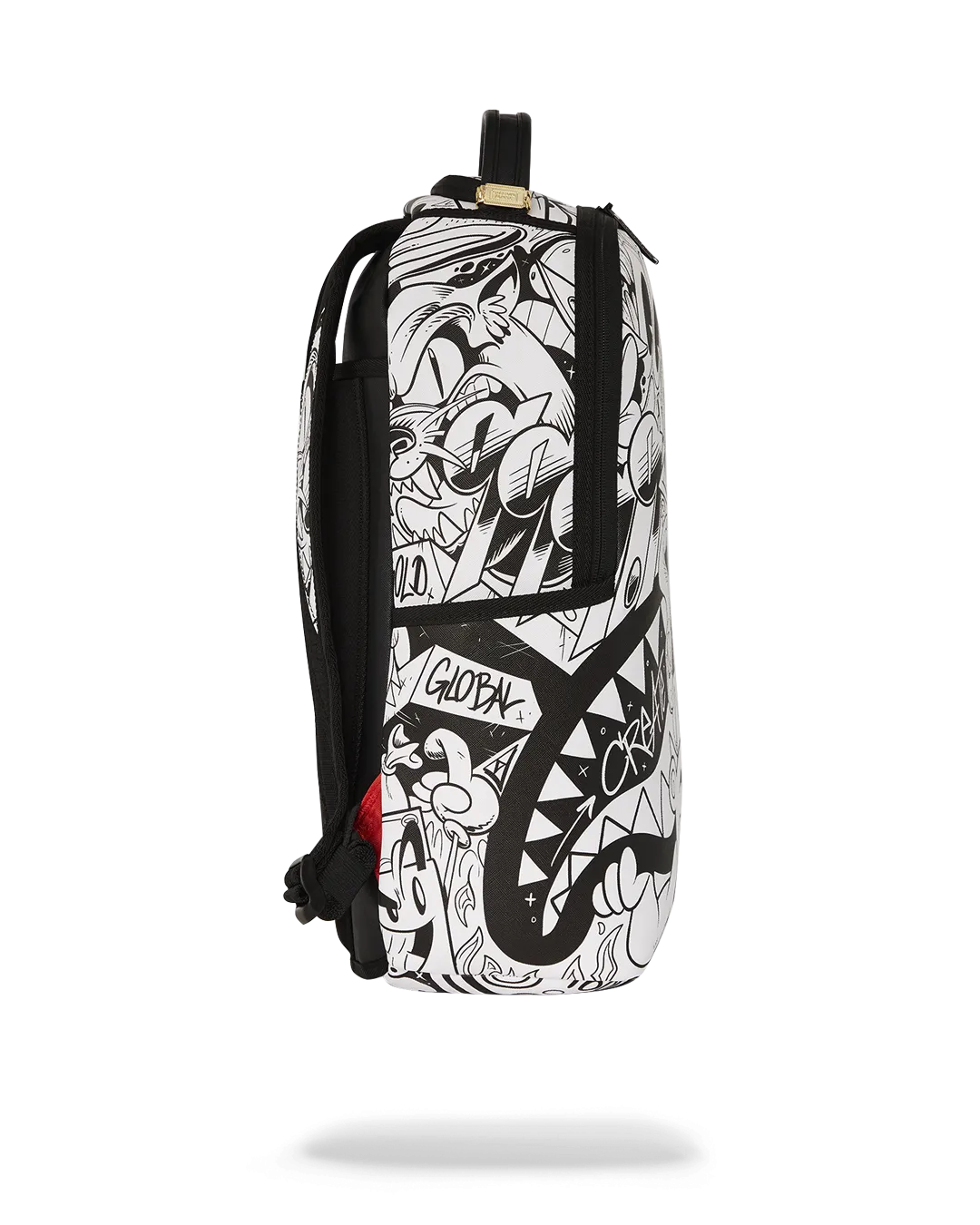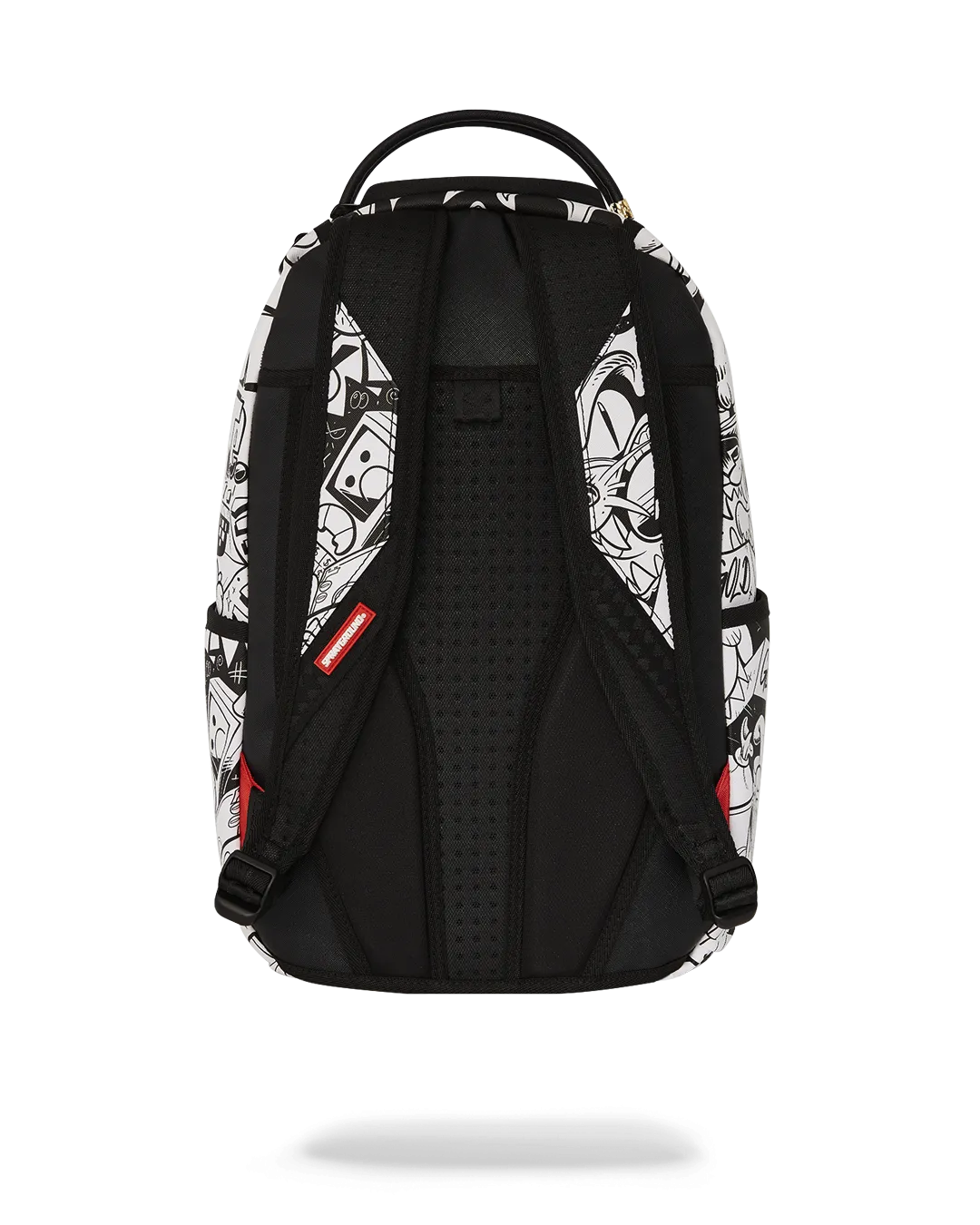Dimensions: 18″ x 6″ x 11.5″ ? Front zipper pocket ? Side pockets ? Zippered Stash pocket ? Separate velour sunglass compartment ? Ergonomic mesh back padding ? Adjustable Straps for custom sizing ? Gold zippers with metal hardware ? Metal “Sprayground Authentic” badge ? Slide through back sleeve connects to carry-on luggage to free your hands