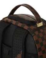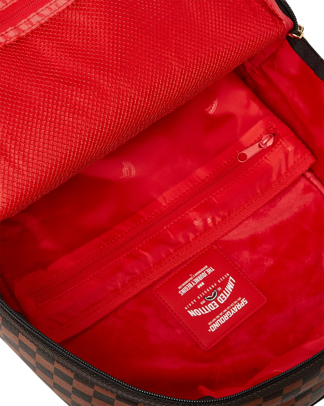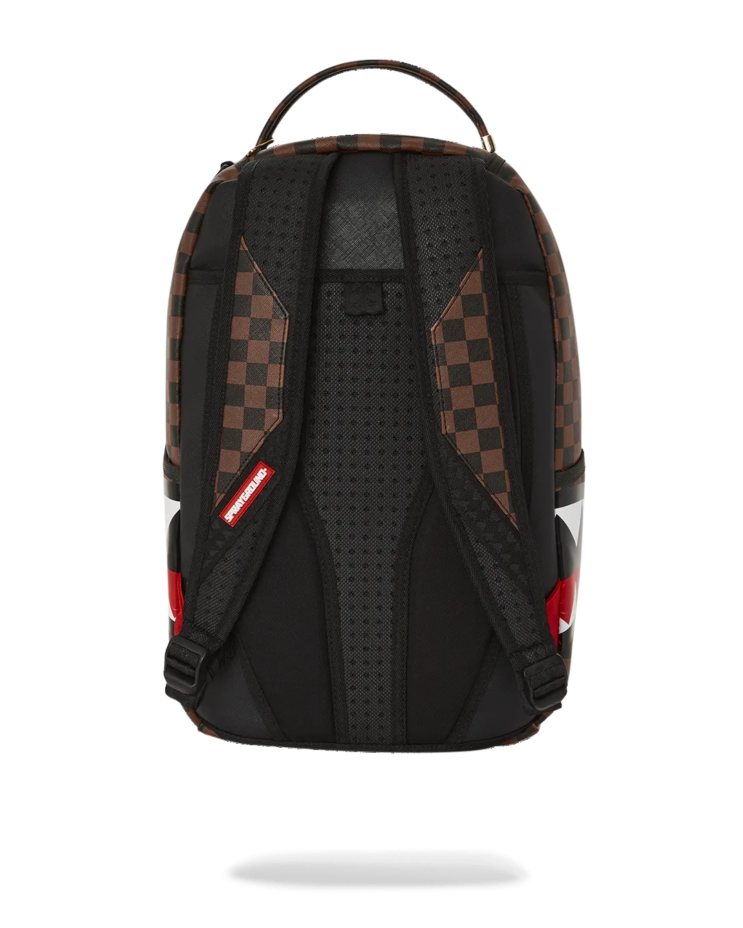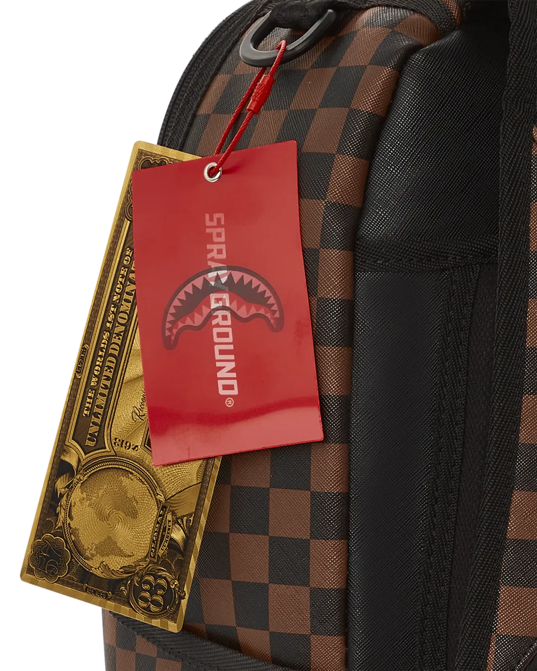 Dimensions: 18″ x 6″ x 11.5″ ? Front zipper pocket ? Side pockets ? Zippered Stash pocket ? Separate velour sunglass compartment ? Ergonomic mesh back padding ? Adjustable Straps for custom sizing ? Gold zippers with metal hardware ? Metal “Sprayground Authentic” badge ? Slide through back sleeve connects to carry-on luggage to free your hands