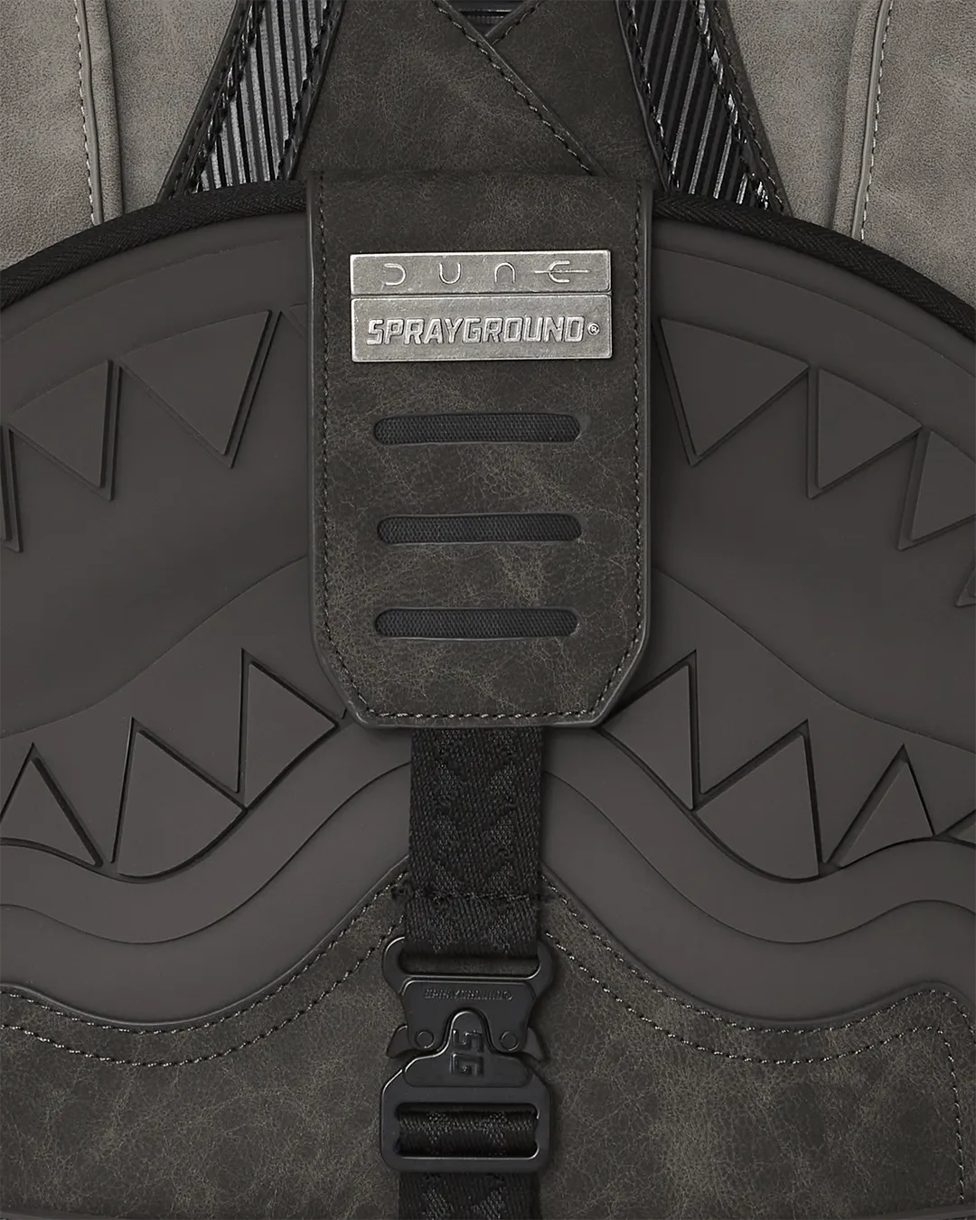 Dimensions: 18″ x 6″ x 11.5″ ? Front zipper pocket ? Side pockets ? Zippered Stash pocket ? Separate velour sunglass compartment ? Ergonomic mesh back padding ? Adjustable Straps for custom sizing ? Gold zippers with metal hardware ? Metal “Sprayground Authentic” badge ? Slide through back sleeve connects to carry-on luggage to free your hands