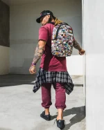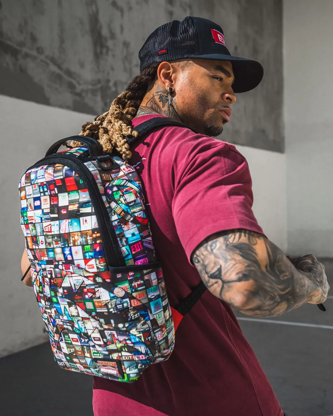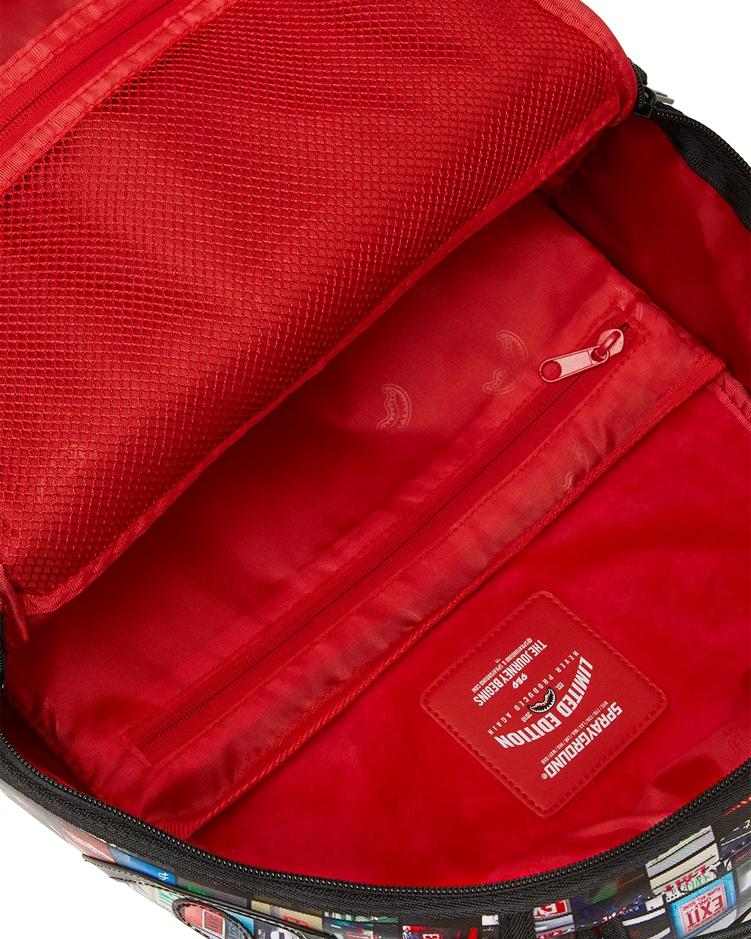 Dimensions: 18″ x 6″ x 11.5″ ? Front zipper pocket ? Side pockets ? Zippered Stash pocket ? Separate velour sunglass compartment ? Ergonomic mesh back padding ? Adjustable Straps for custom sizing ? Gold zippers with metal hardware ? Metal “Sprayground Authentic” badge ? Slide through back sleeve connects to carry-on luggage to free your hands