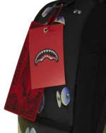 Dimensions: 18″ x 6″ x 11.5″ ? Front zipper pocket ? Side pockets ? Zippered Stash pocket ? Separate velour sunglass compartment ? Ergonomic mesh back padding ? Adjustable Straps for custom sizing ? Gold zippers with metal hardware ? Metal “Sprayground Authentic” badge ? Slide through back sleeve connects to carry-on luggage to free your hands
