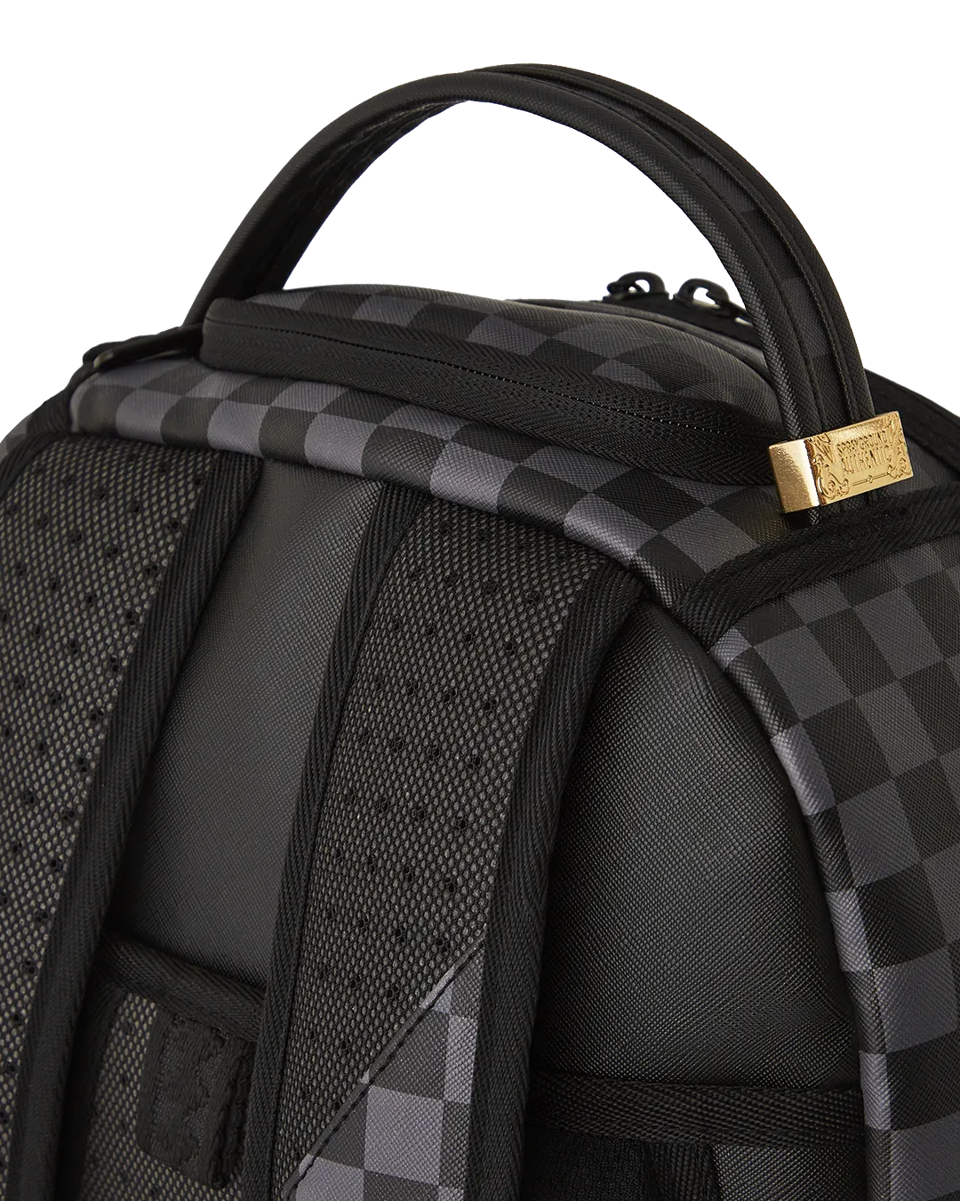 Dimensions: 18″ x 6″ x 11.5″ ? Front zipper pocket ? Side pockets ? Zippered Stash pocket ? Separate velour sunglass compartment ? Ergonomic mesh back padding ? Adjustable Straps for custom sizing ? Gold zippers with metal hardware ? Metal “Sprayground Authentic” badge ? Slide through back sleeve connects to carry-on luggage to free your hands