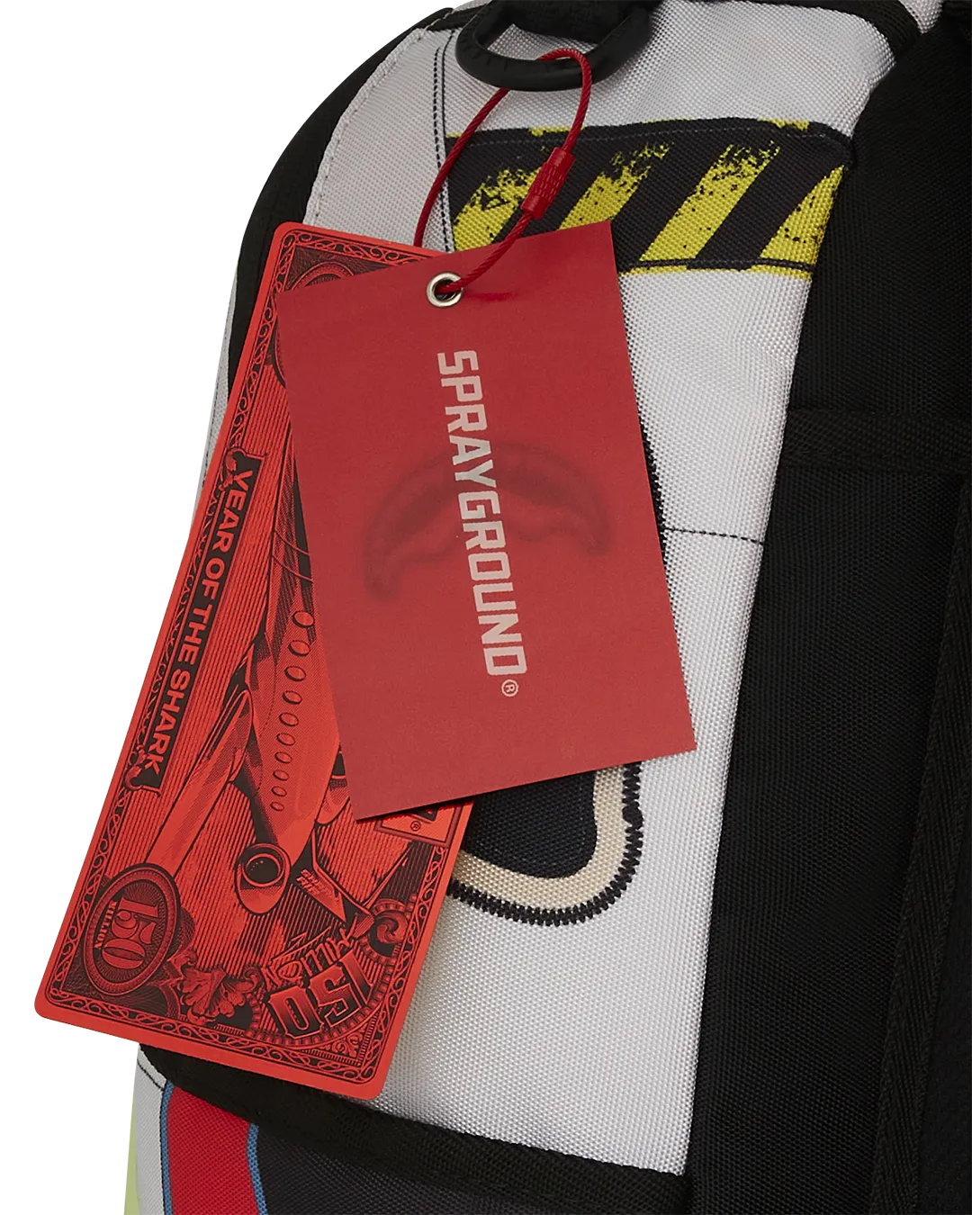 Dimensions: 18″ x 6″ x 11.5″ ? Front zipper pocket ? Side pockets ? Zippered Stash pocket ? Separate velour sunglass compartment ? Ergonomic mesh back padding ? Adjustable Straps for custom sizing ? Gold zippers with metal hardware ? Metal “Sprayground Authentic” badge ? Slide through back sleeve connects to carry-on luggage to free your hands