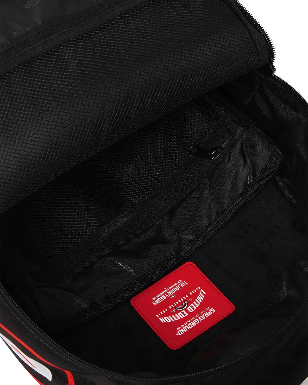 Dimensions: 18″ x 6″ x 11.5″ ? Front zipper pocket ? Side pockets ? Zippered Stash pocket ? Separate velour sunglass compartment ? Ergonomic mesh back padding ? Adjustable Straps for custom sizing ? Gold zippers with metal hardware ? Metal “Sprayground Authentic” badge ? Slide through back sleeve connects to carry-on luggage to free your hands
